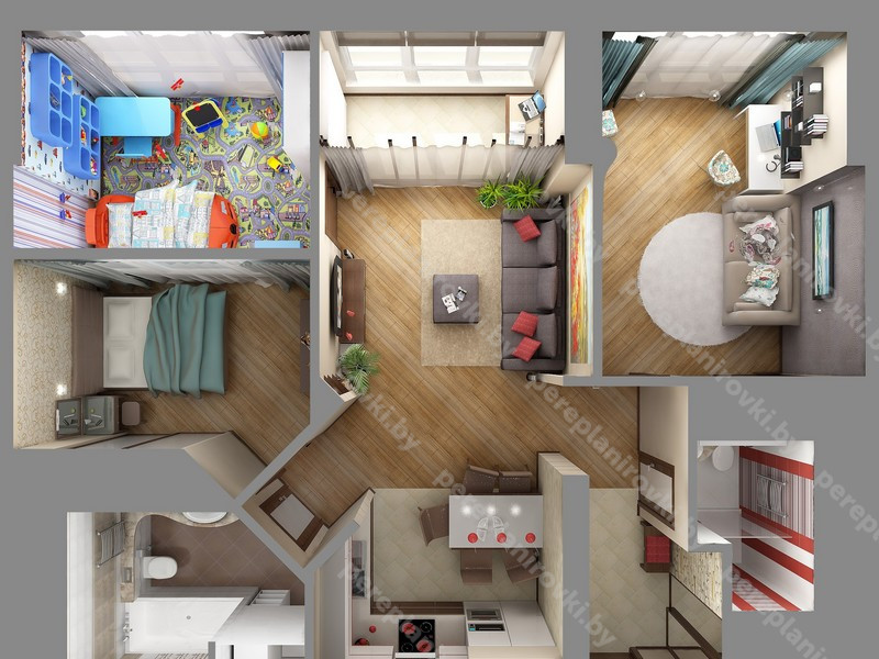 Варианты перепланировки квартир, как правило, могут быть следующие: замена перегородок (полная или частичная), организация проемов в несущей стене, полное обновление инженерного оборудования, полное обновление сантехнического оборудования, архитектурные изменения фасада.