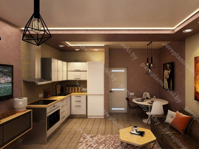 - Незначительная площадь помещения, подлежащего перепланировке. Прибегают к зонированию пространства с помощью подвесного многоуровневого потолка или изгибам в перегородках для устройства ниш.