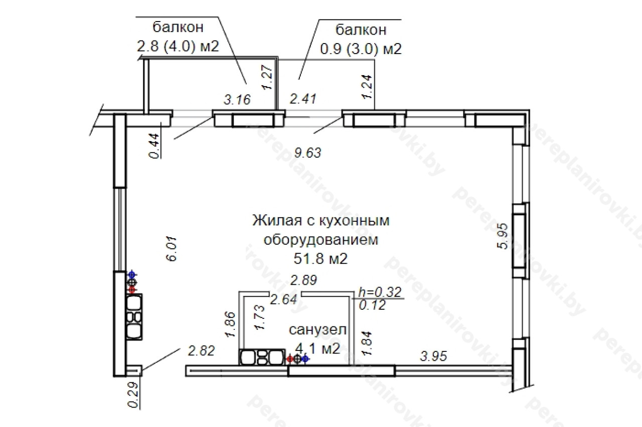 Выполнили проект перепланировки по улице Аэродромная д. 26 в Минске представляет собой следующие решения: