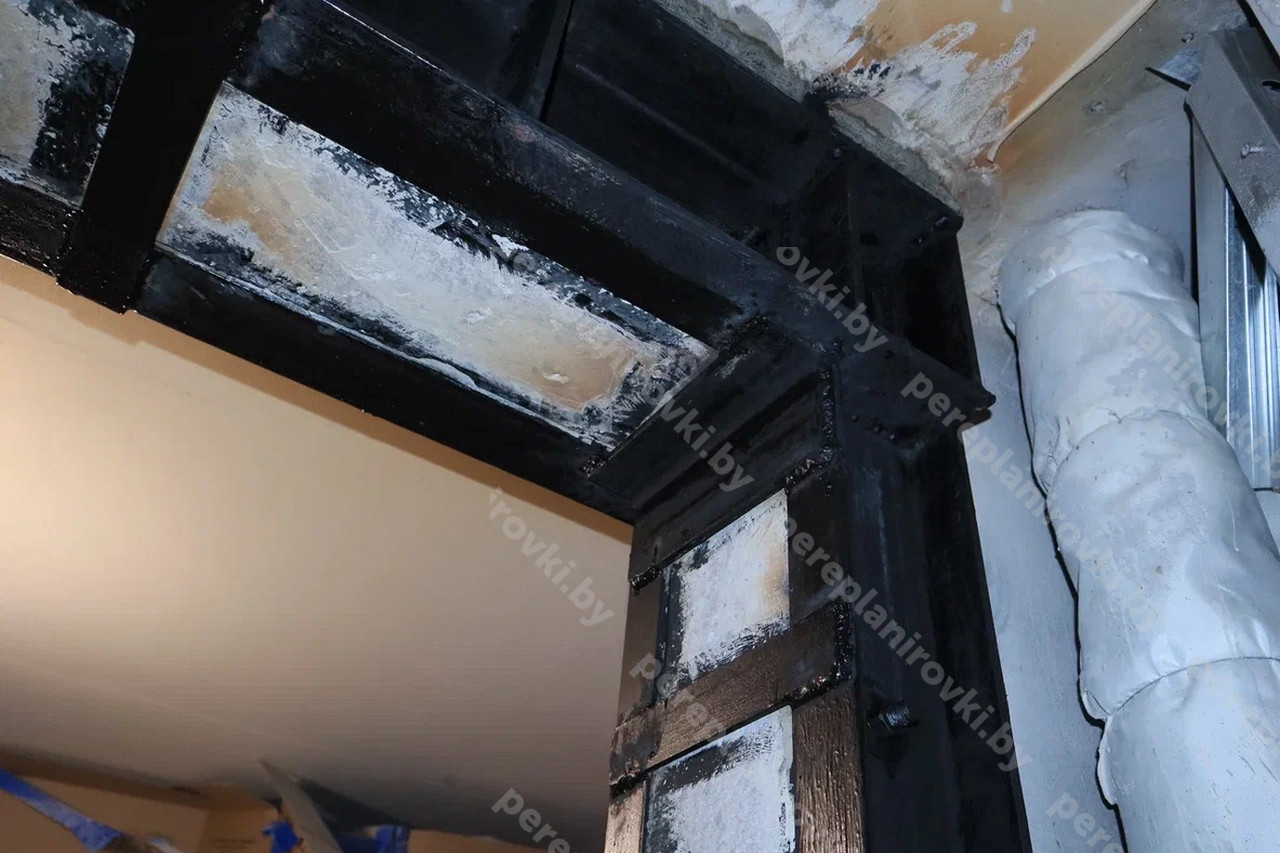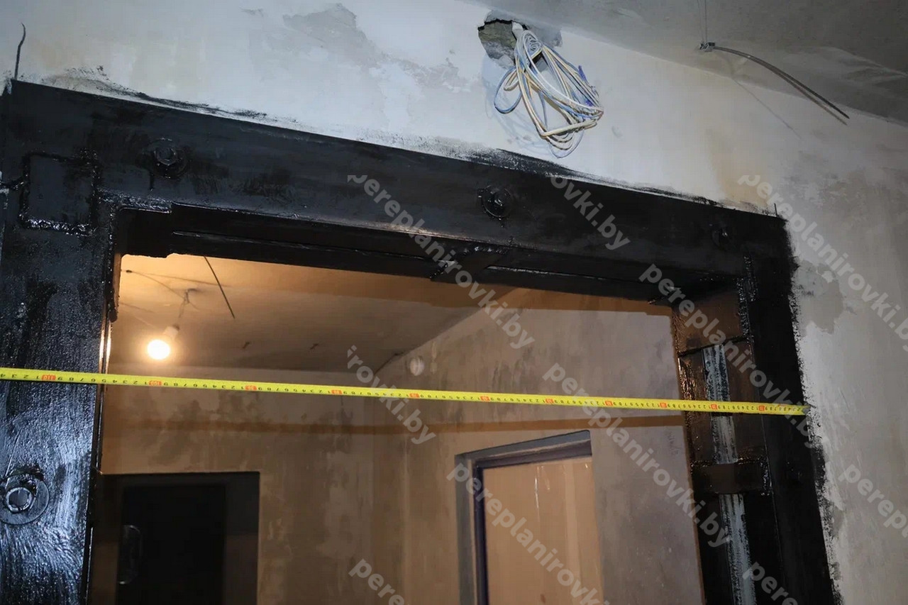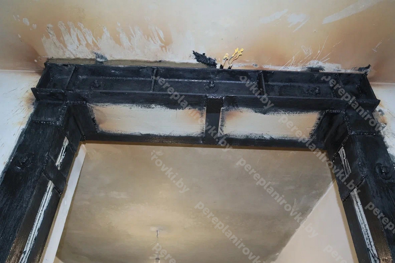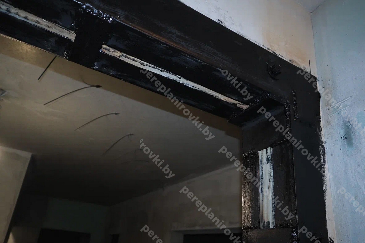 - - Проём между квартирами в несущей стене с усилением металлом (приложили Аттестаты Соответствия).