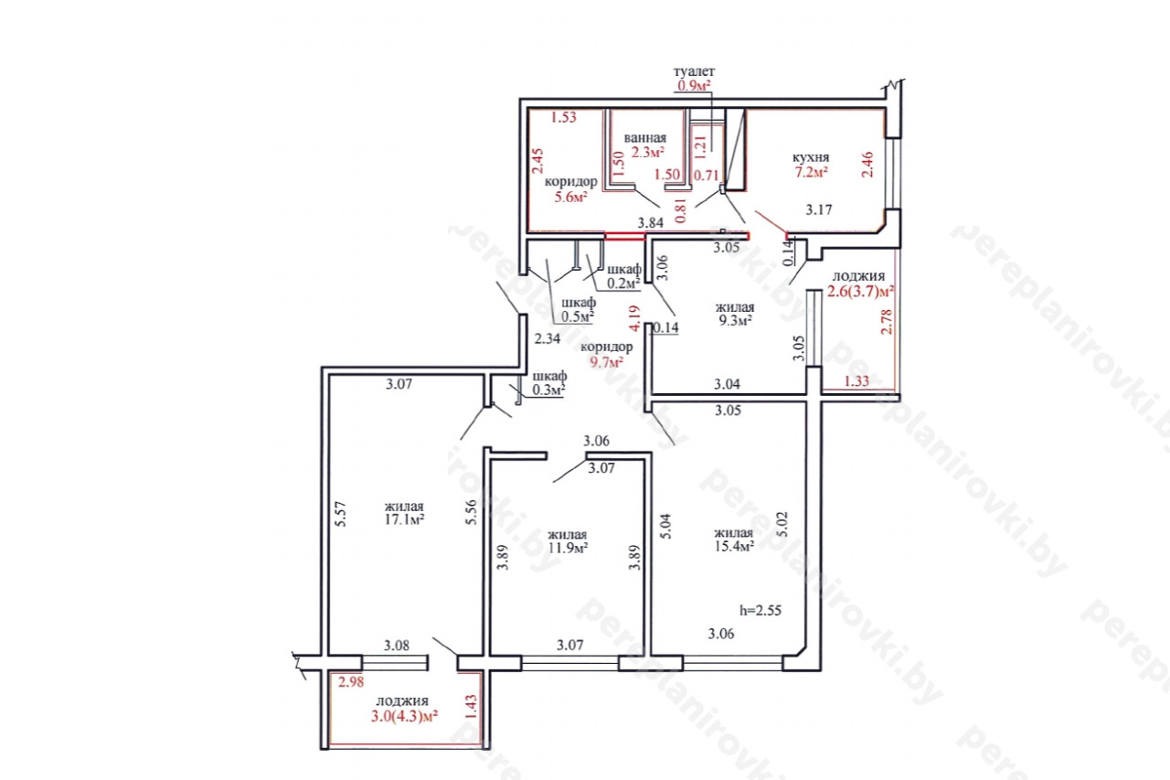 Узаконивание перепланировки квартиры по улице Байкальская д. 33 в Минске представляет собой следующие решения: