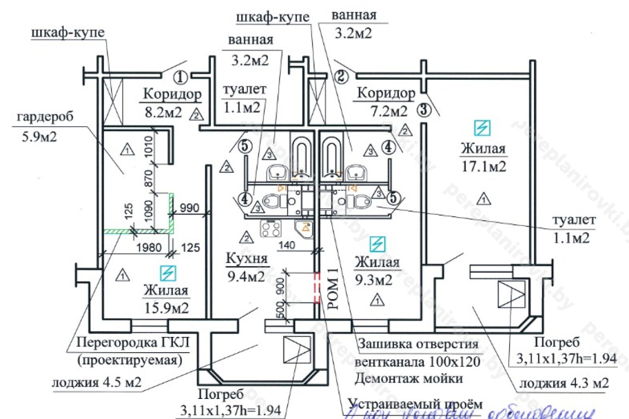 Выполнили перепланировки квартиры в несущей стене по ул. Фроликова д. 4 в Минске представляет собой следующие решения: