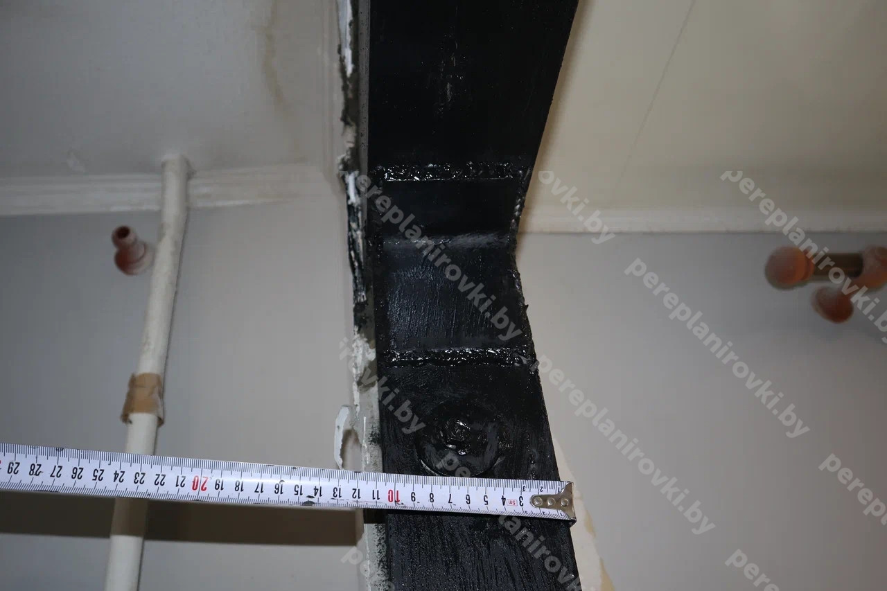 - Выполнили строй работы по усилению рамой опорной металлической РОМ1 существующего проёма между жилой и кухней.
