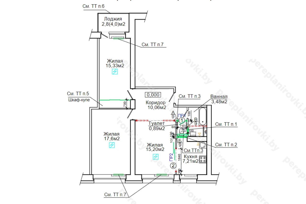 Выполнили проект перепланировки квартиры по улице Голодеда д. 31 в Минске представляет собой следующие решения: