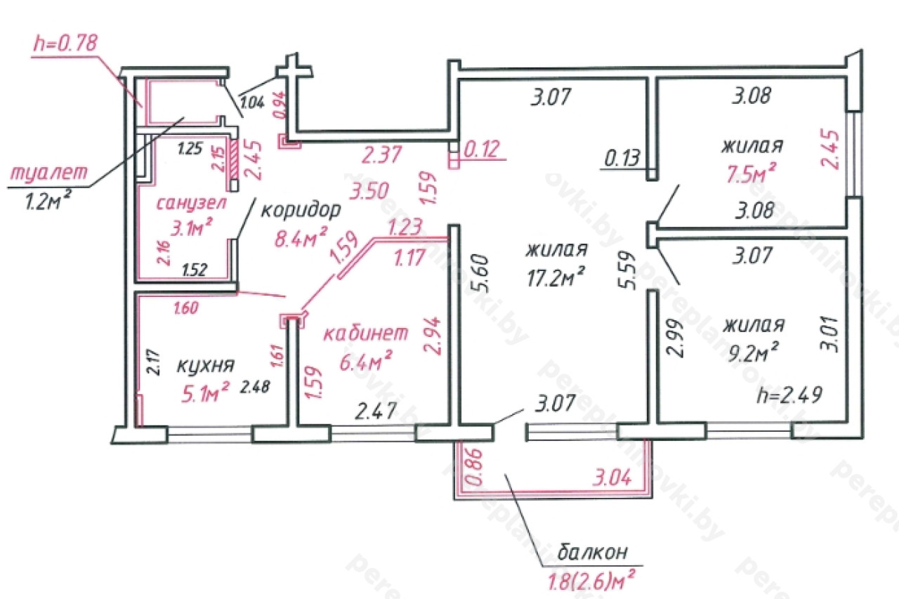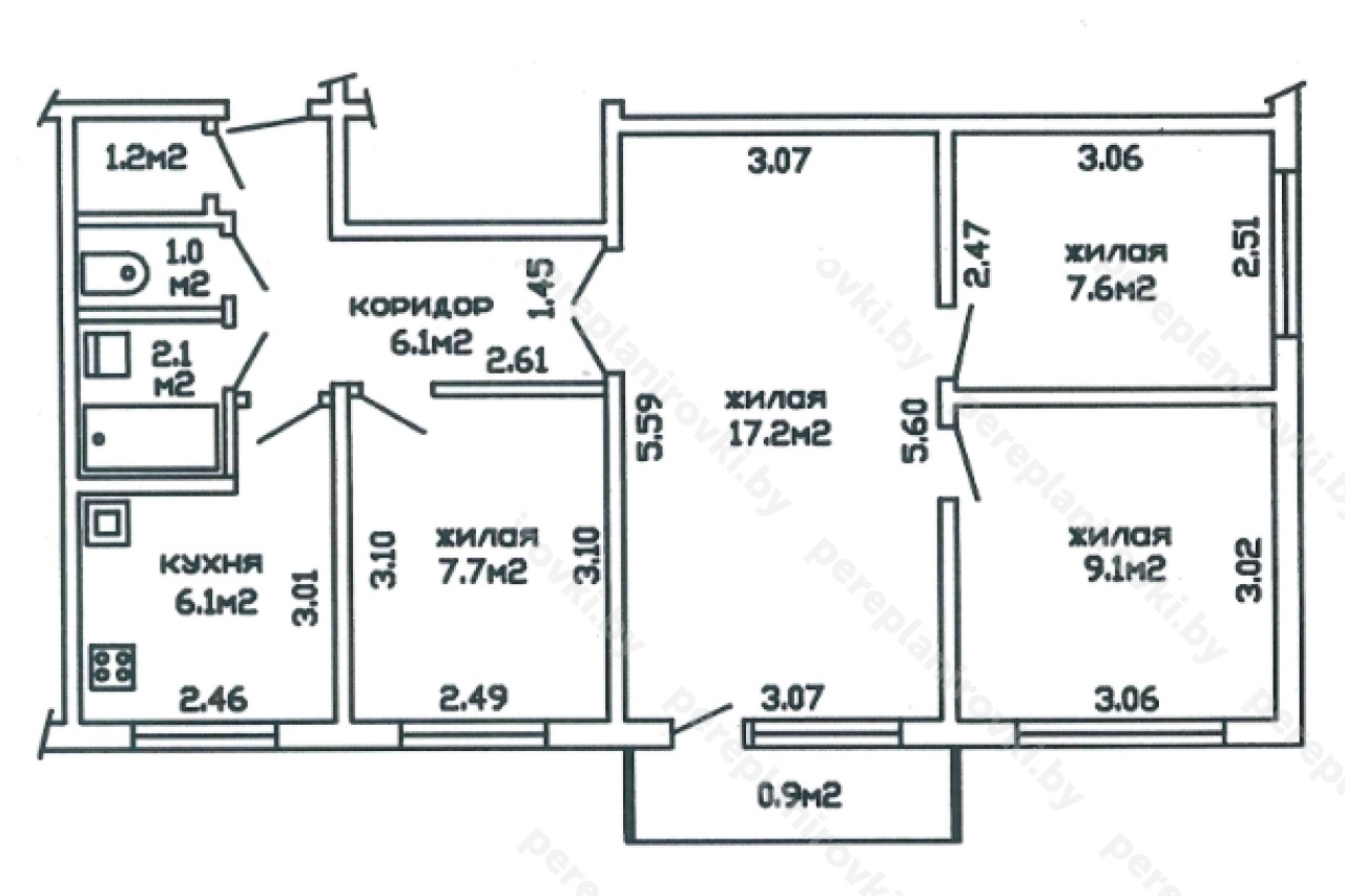 Выполнили согласование перепланировки квартиры по улице Калиновского д. 61 в Минске представляет собой следующие решения: