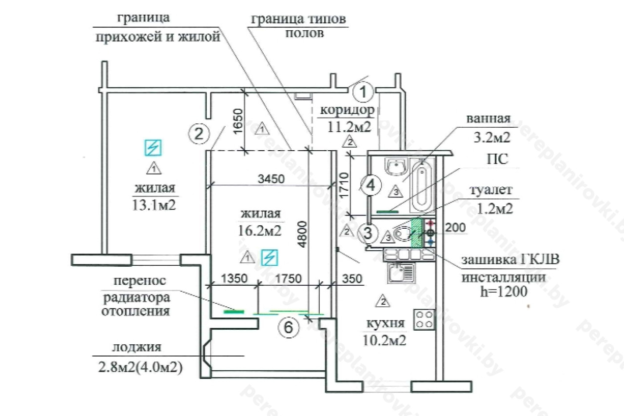 Выполнили проект перепланировки квартиры по ул. Каменногорская д. 90 в Минске представляет собой следующие решения: