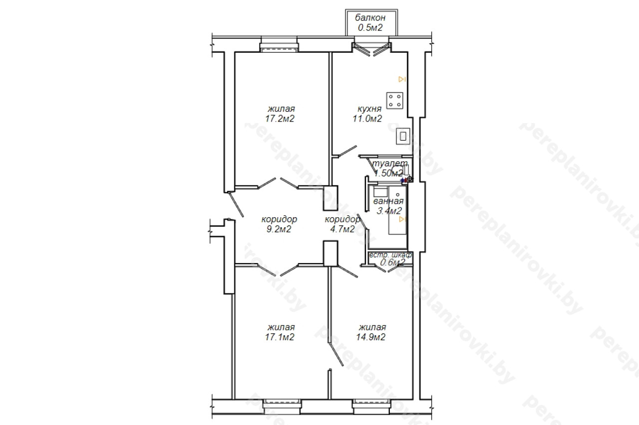 Выполнили проект перепланировки квартиры по улице Якуба Коласа д. 55 к. 1 в Минске представляет собой следующие решения: