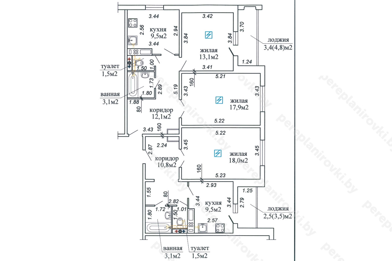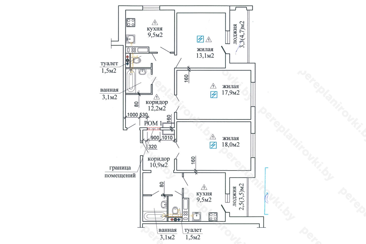 Выполнили перепланировку квартиры по проспекту Корзюки д. 12 в Минске представляет собой следующие решения: