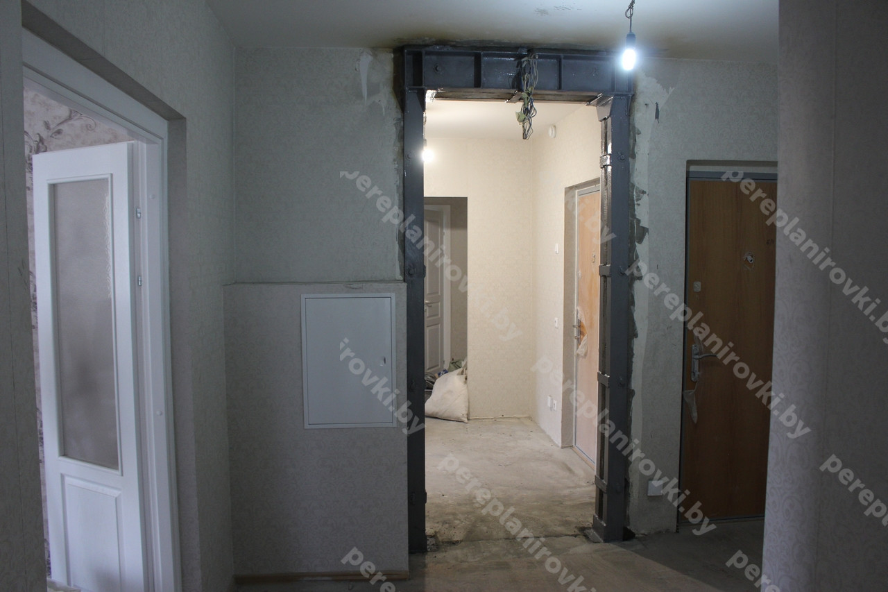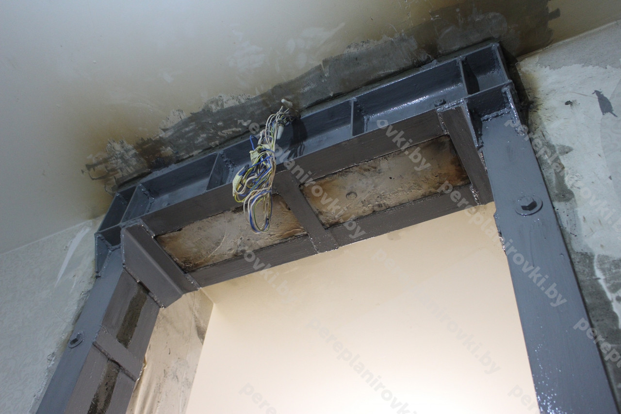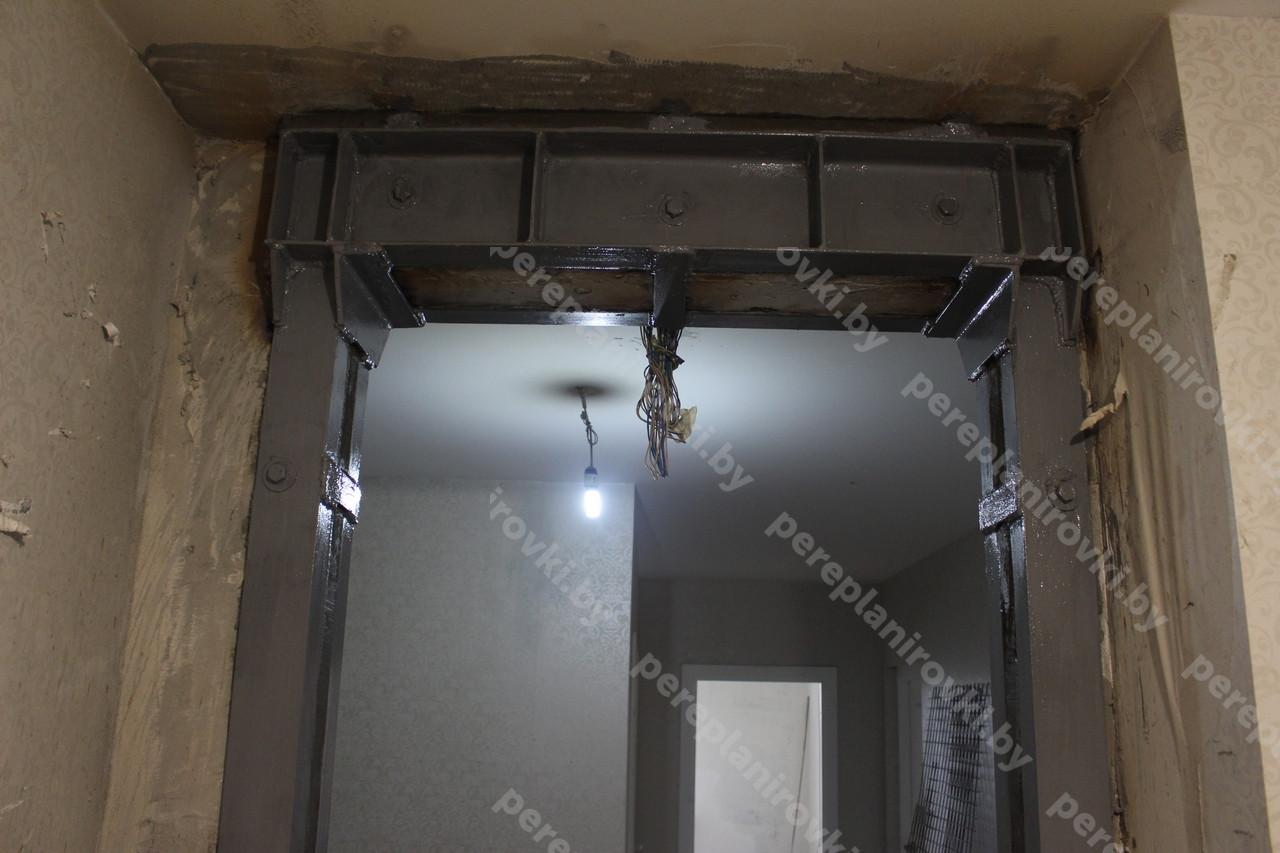 - - Проём между квартирами в несущей стене с усилением металлом и отделкой ГКЛ.