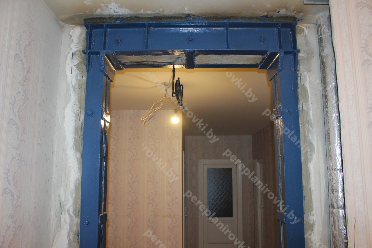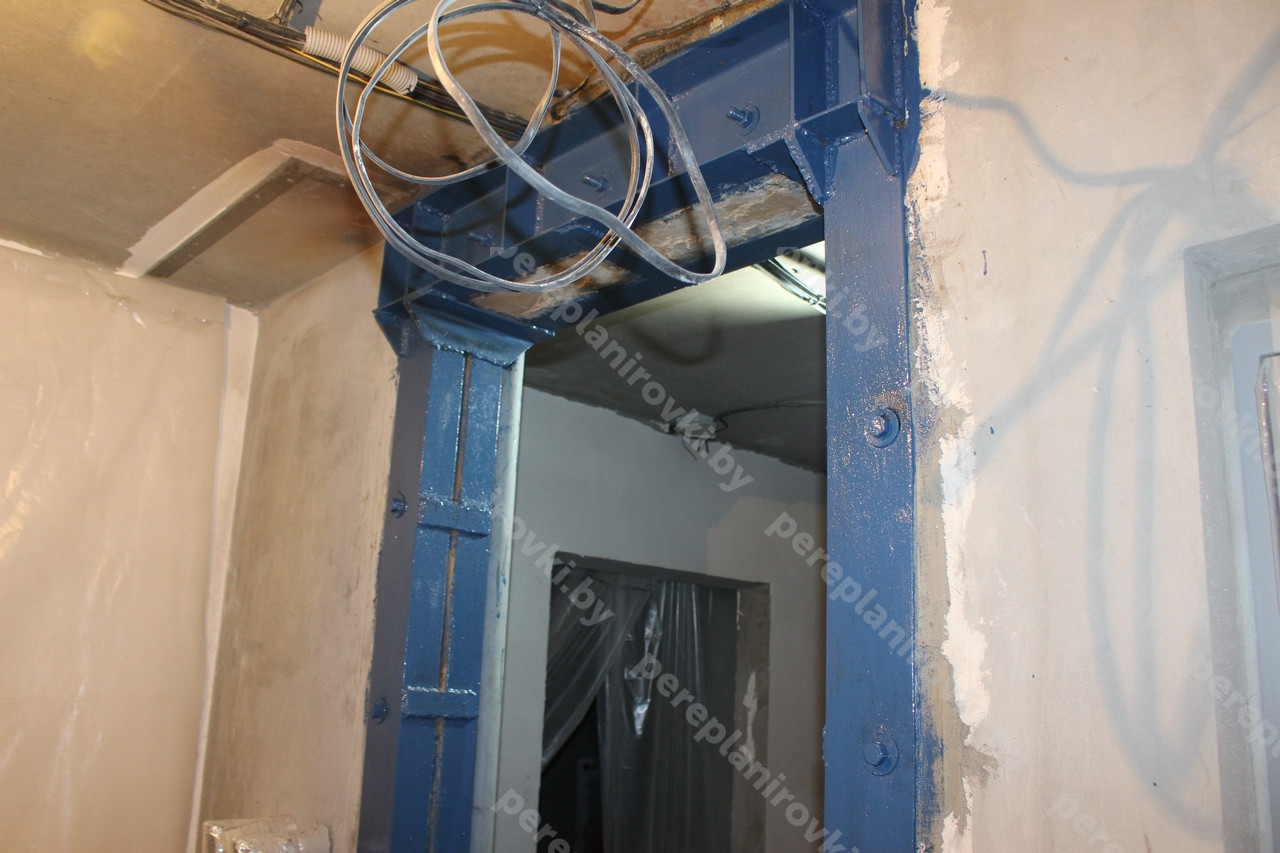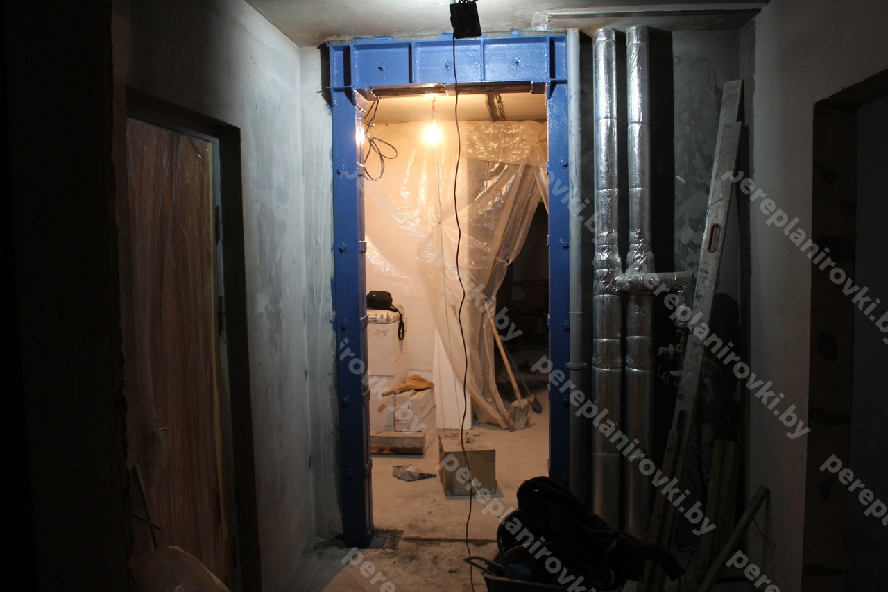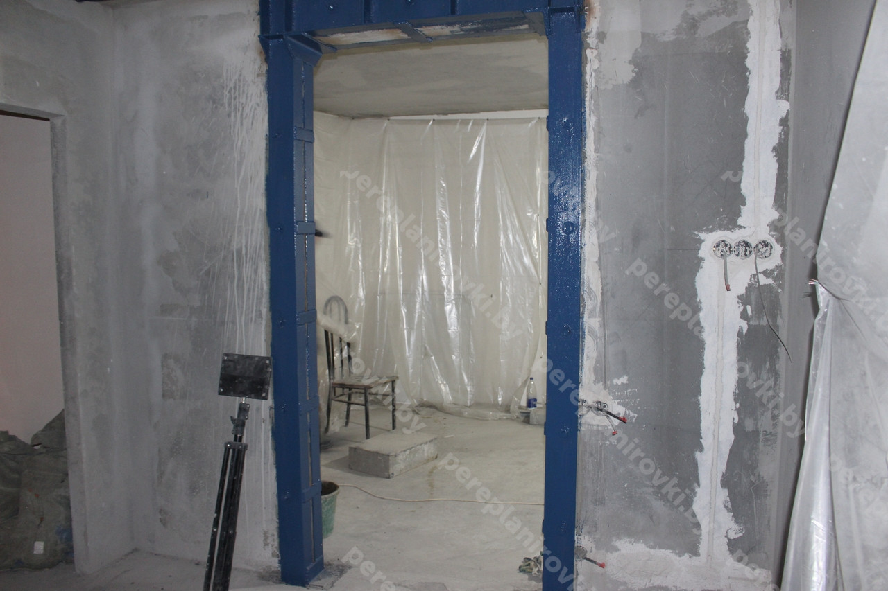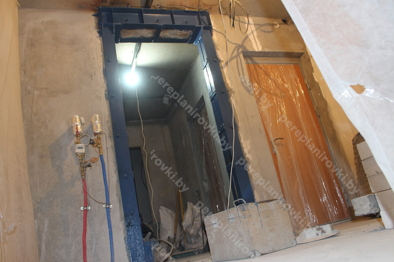 - - Проём между квартирами в несущей стене с усилением металлом и отделкой ГКЛ.