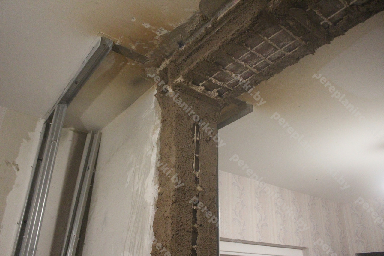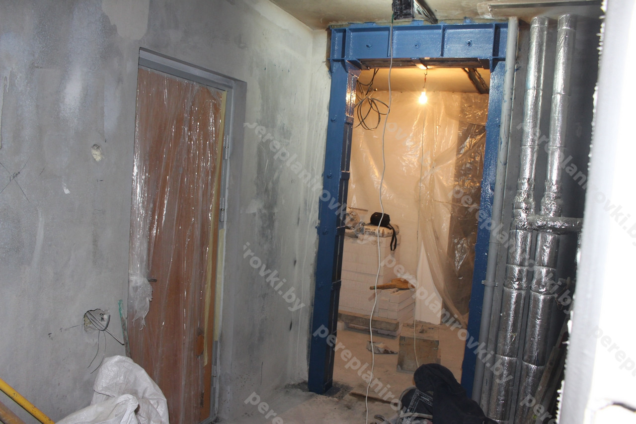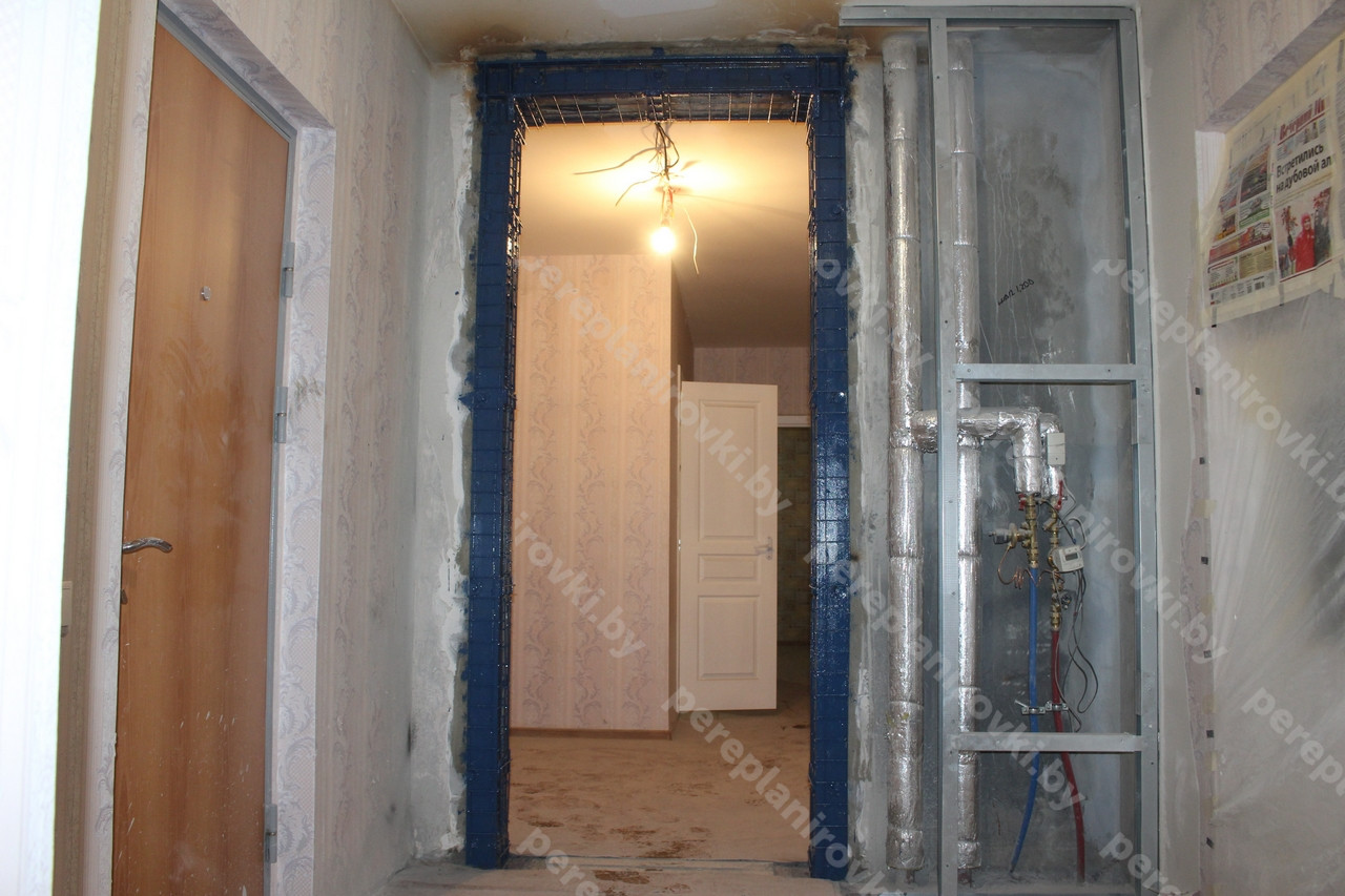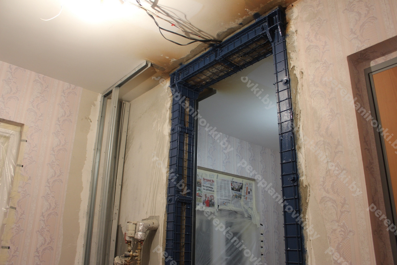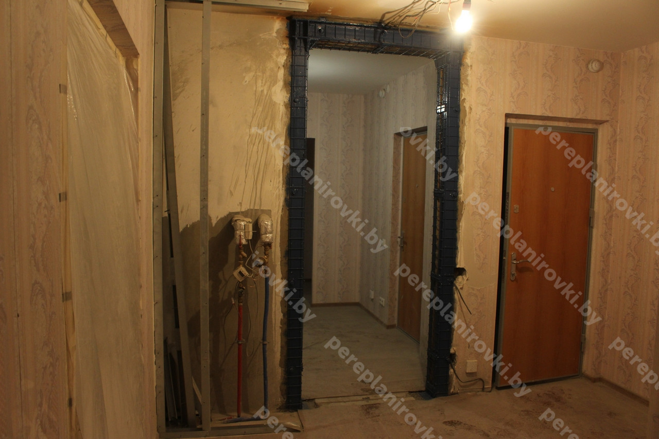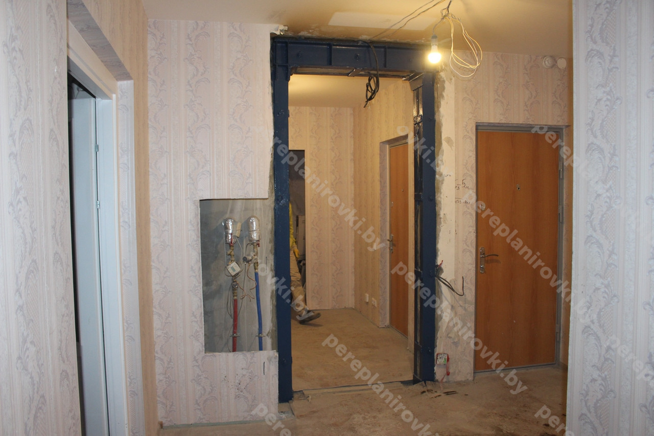 - - Проём между квартирами в несущей стене с усилением металлом и отделкой ГКЛ.