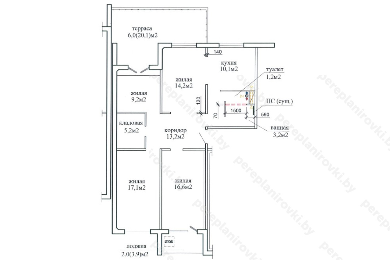 Выполнили проект перепланировки квартиры по улице Космонавтов д.20 в Минске представляет собой следующие решения: