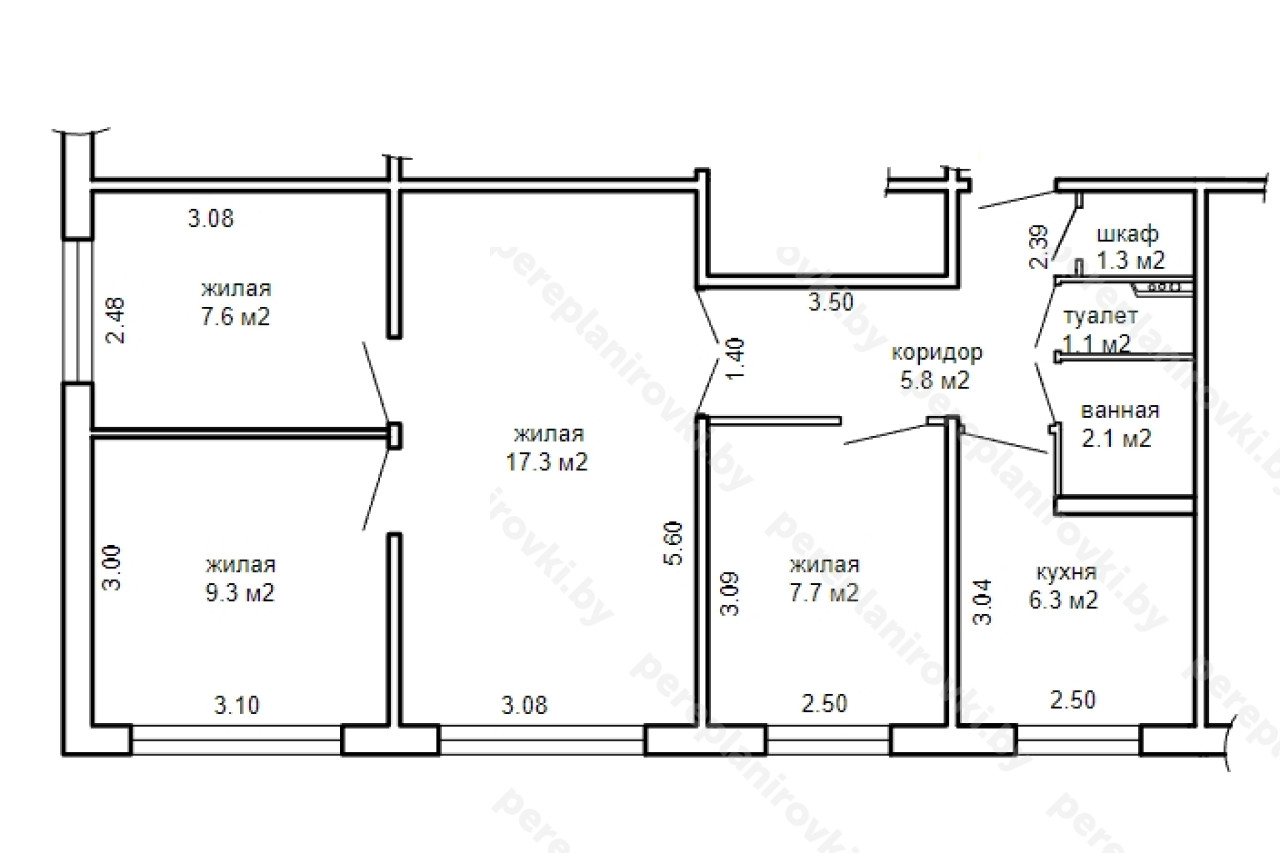 Выполнили проект перепланировки квартиры по улице Ландера д. 62 к. 2 в Минске представляет собой следующие решения:
