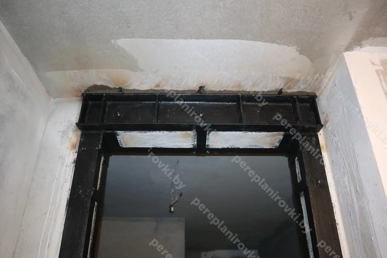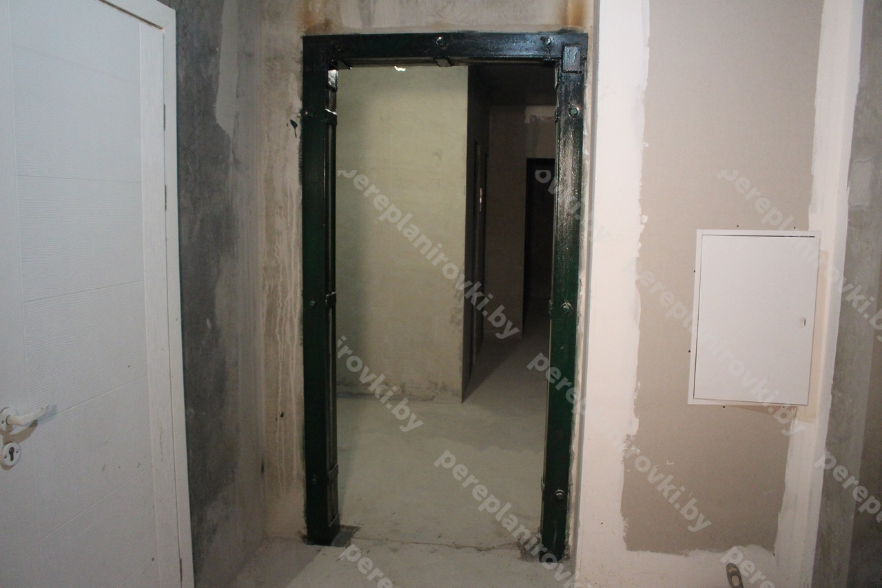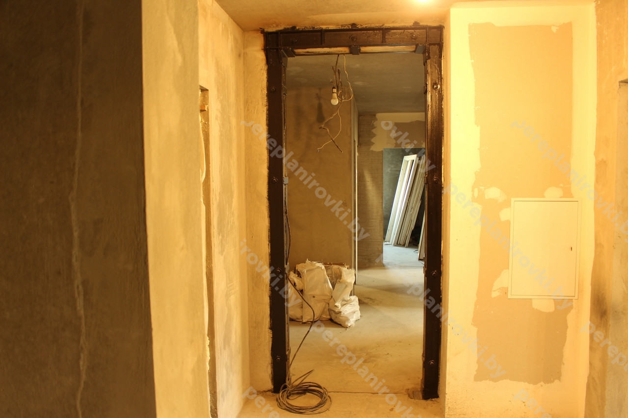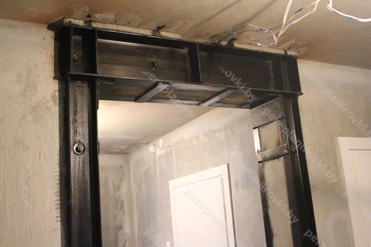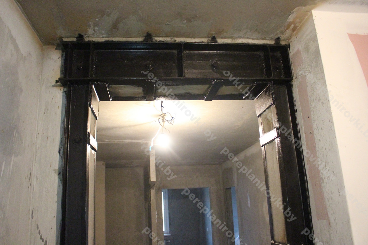 - - Проём между квартирами в несущей стене с усилением металлом и отделкой ГКЛ.