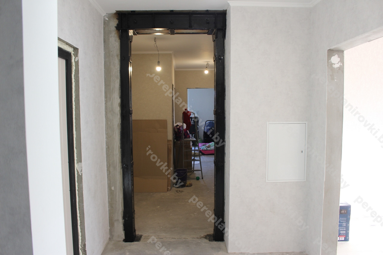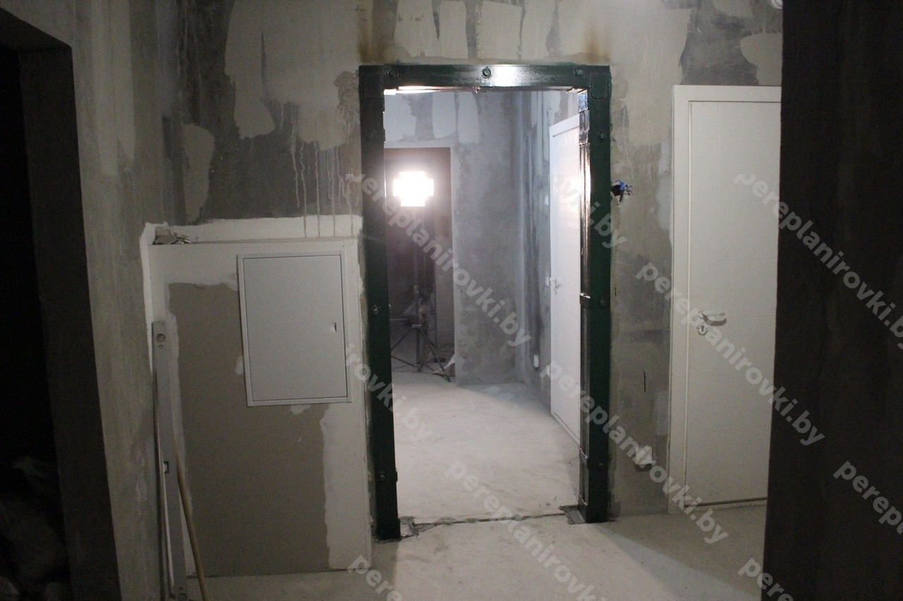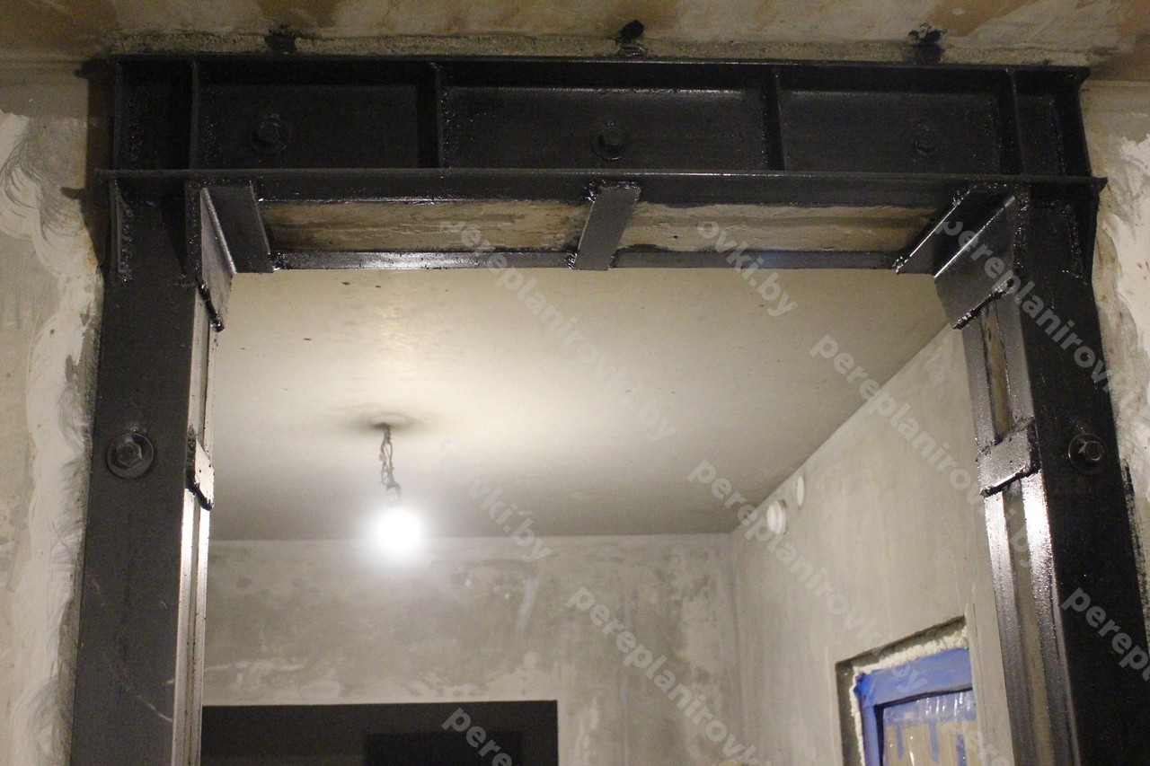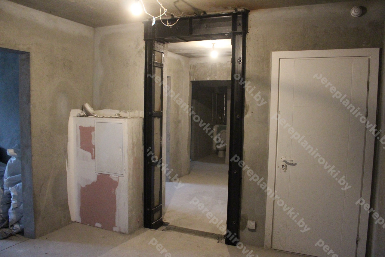 - - Проём между квартирами в несущей стене с усилением металлом и отделкой ГКЛ.