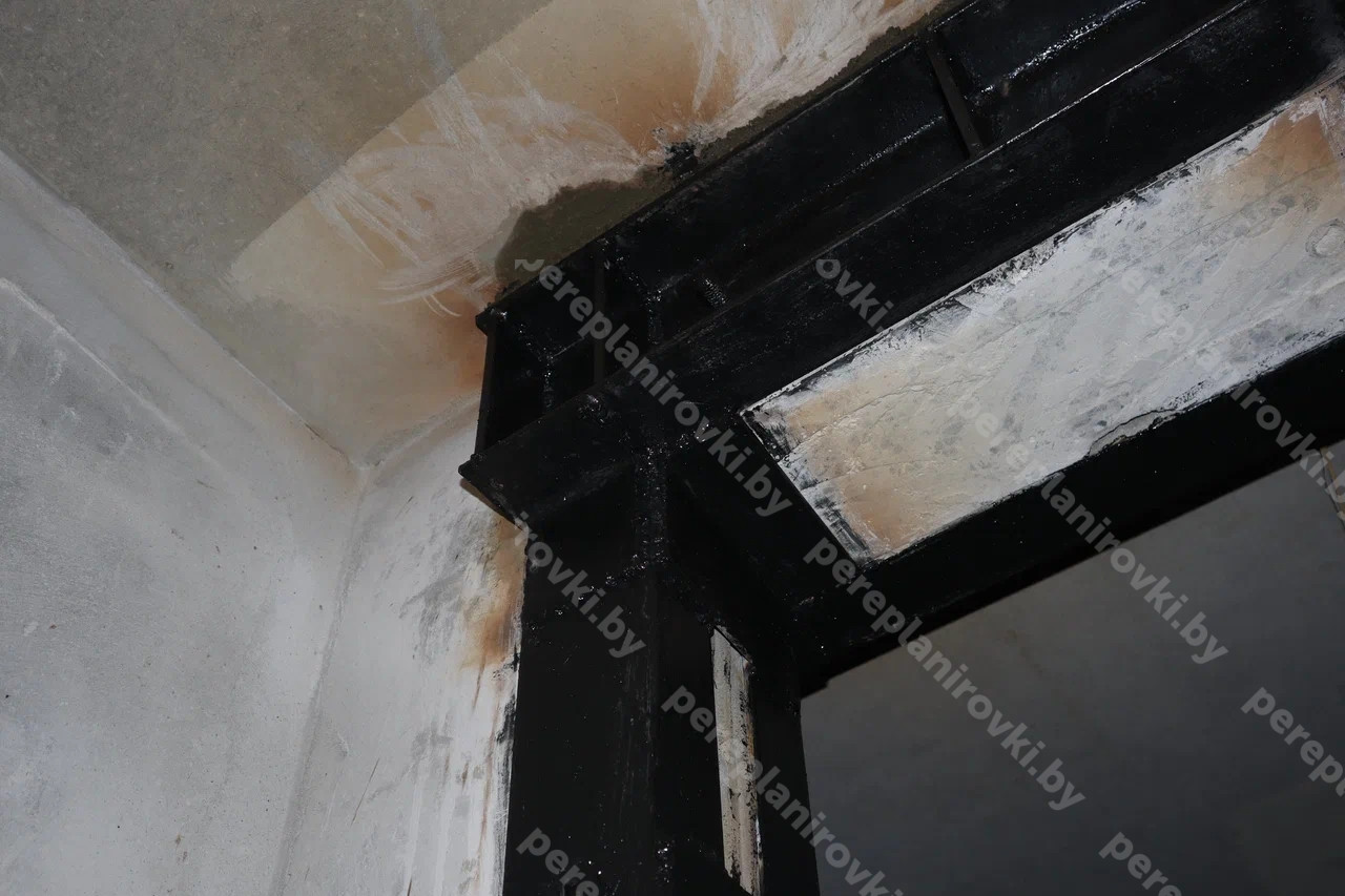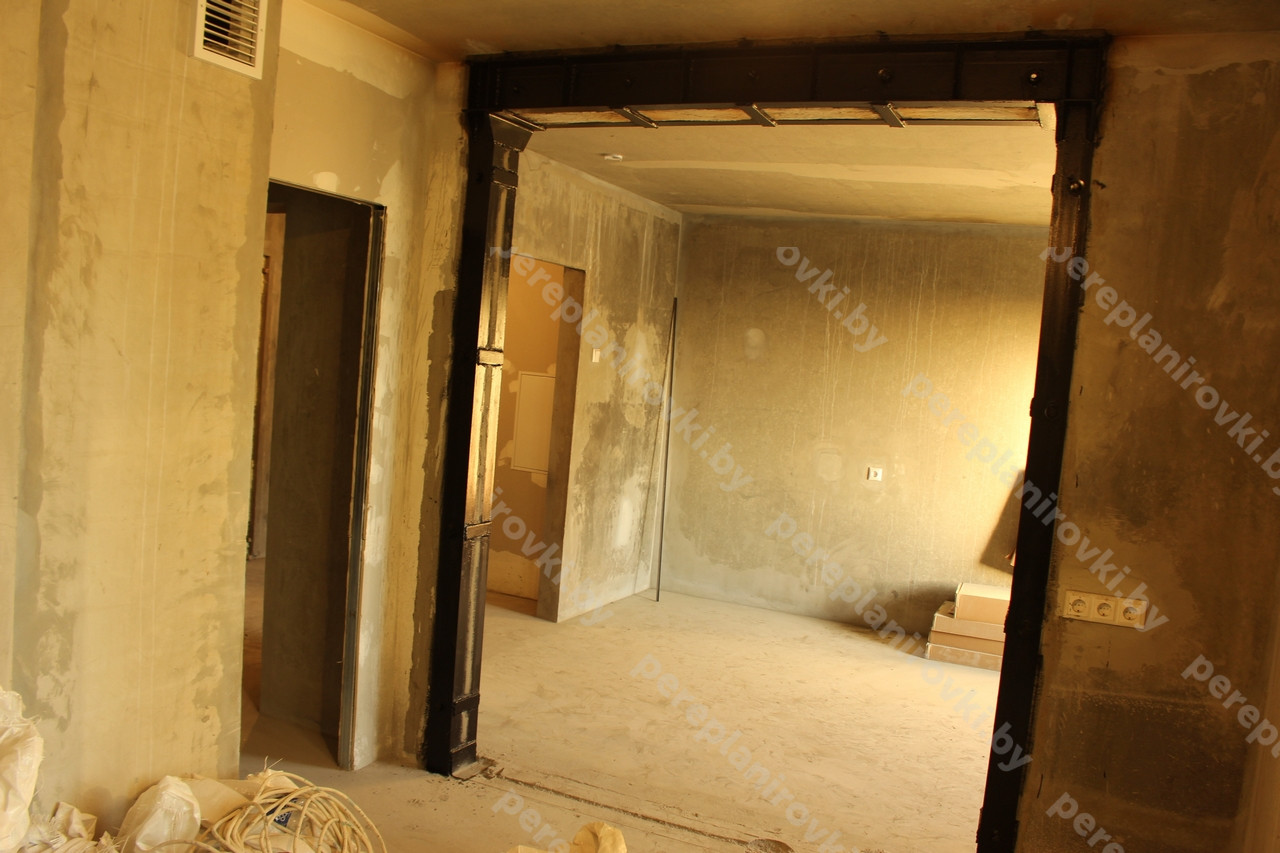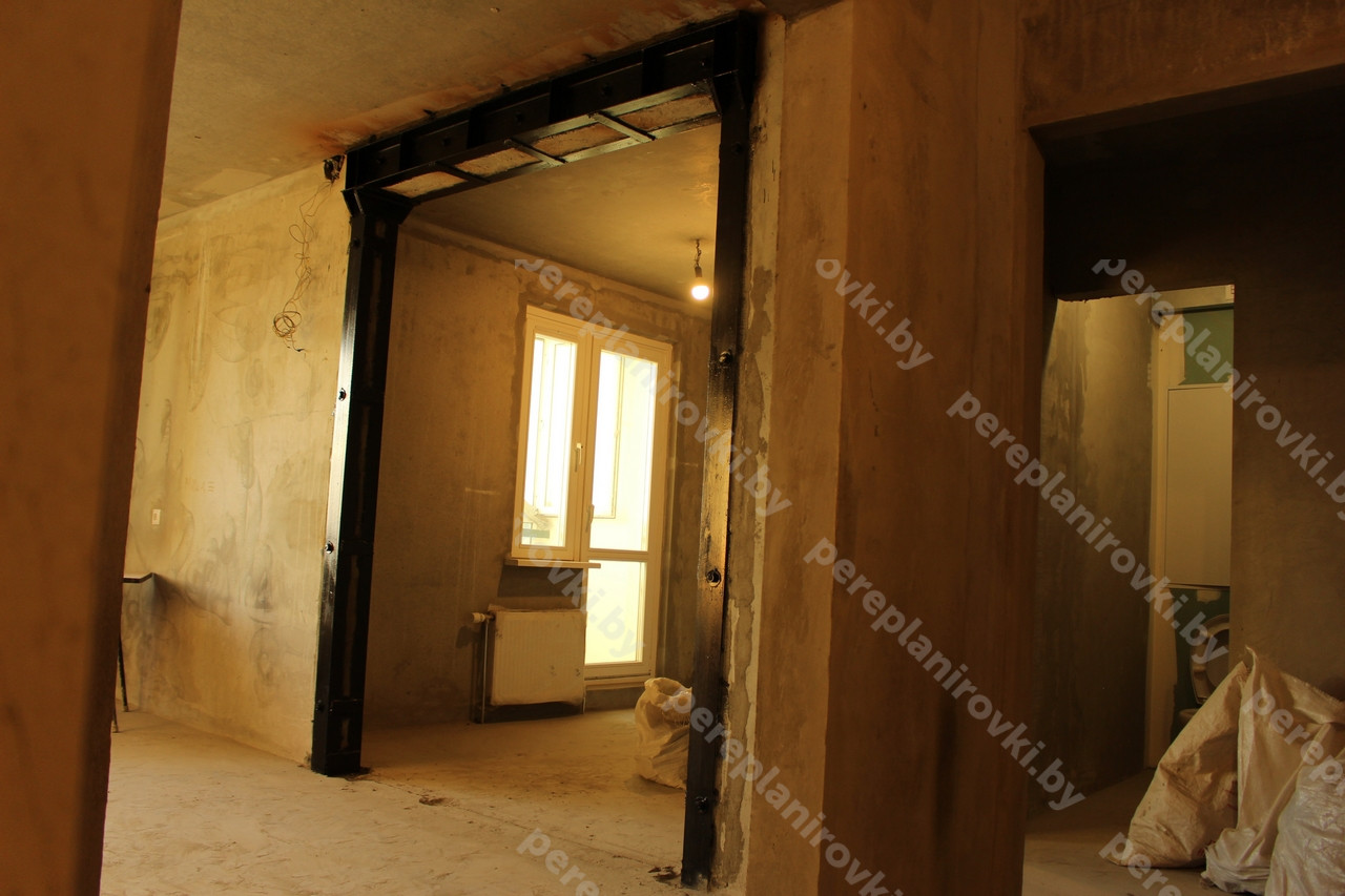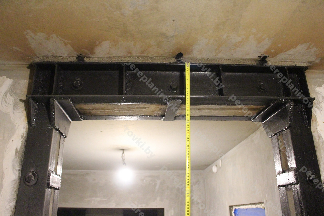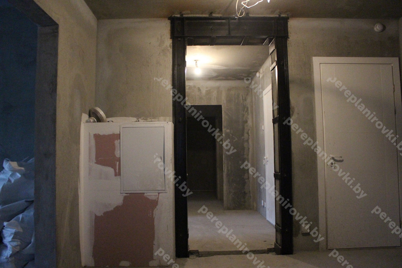 - - Проём между квартирами в несущей стене с усилением металлом и отделкой ГКЛ.