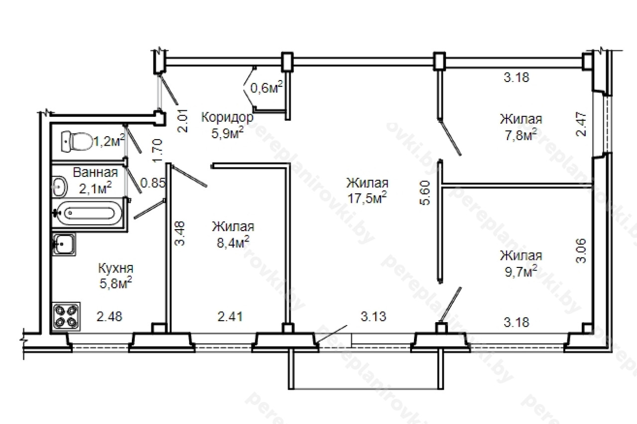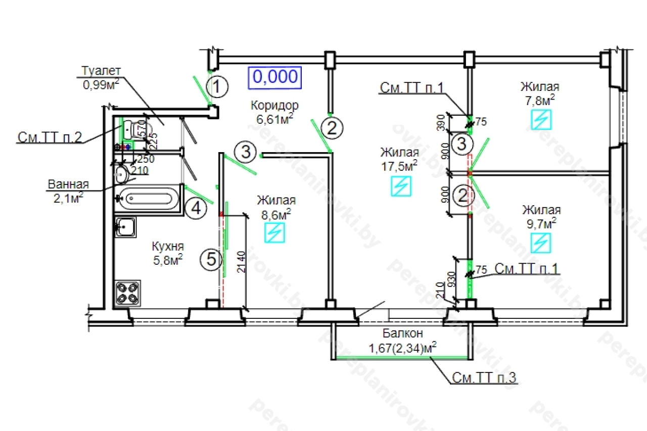 Выполнили проект перепланировки по улице Матусевича д. 4 к. 2 в Минске представляет собой следующие решения: