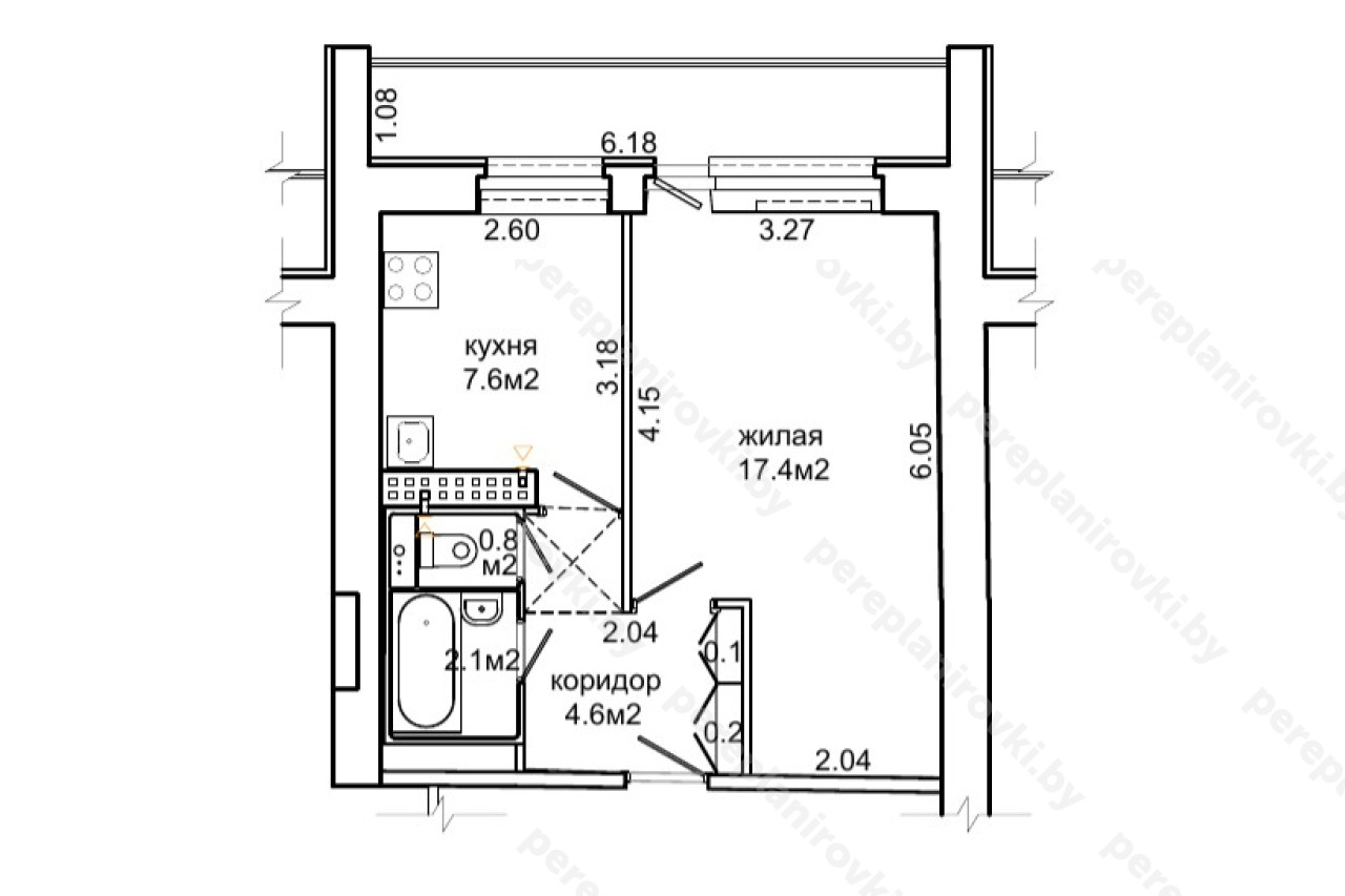 Выполнили перепланировку квартиры по улице Маяковского д. 14 в Минске представляет собой следующие решения: