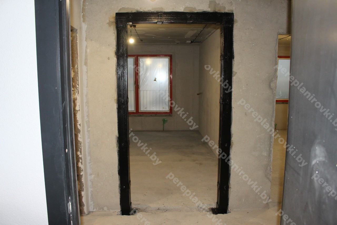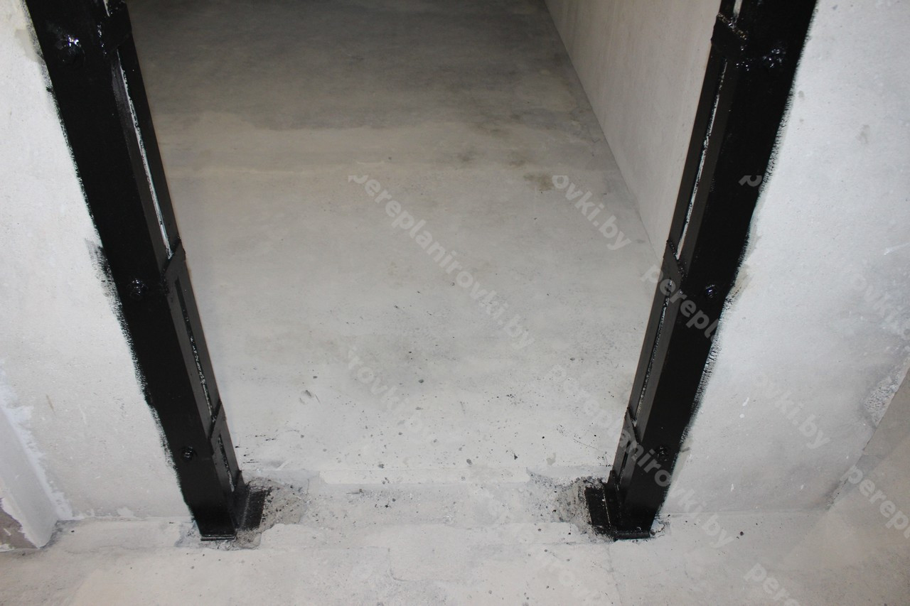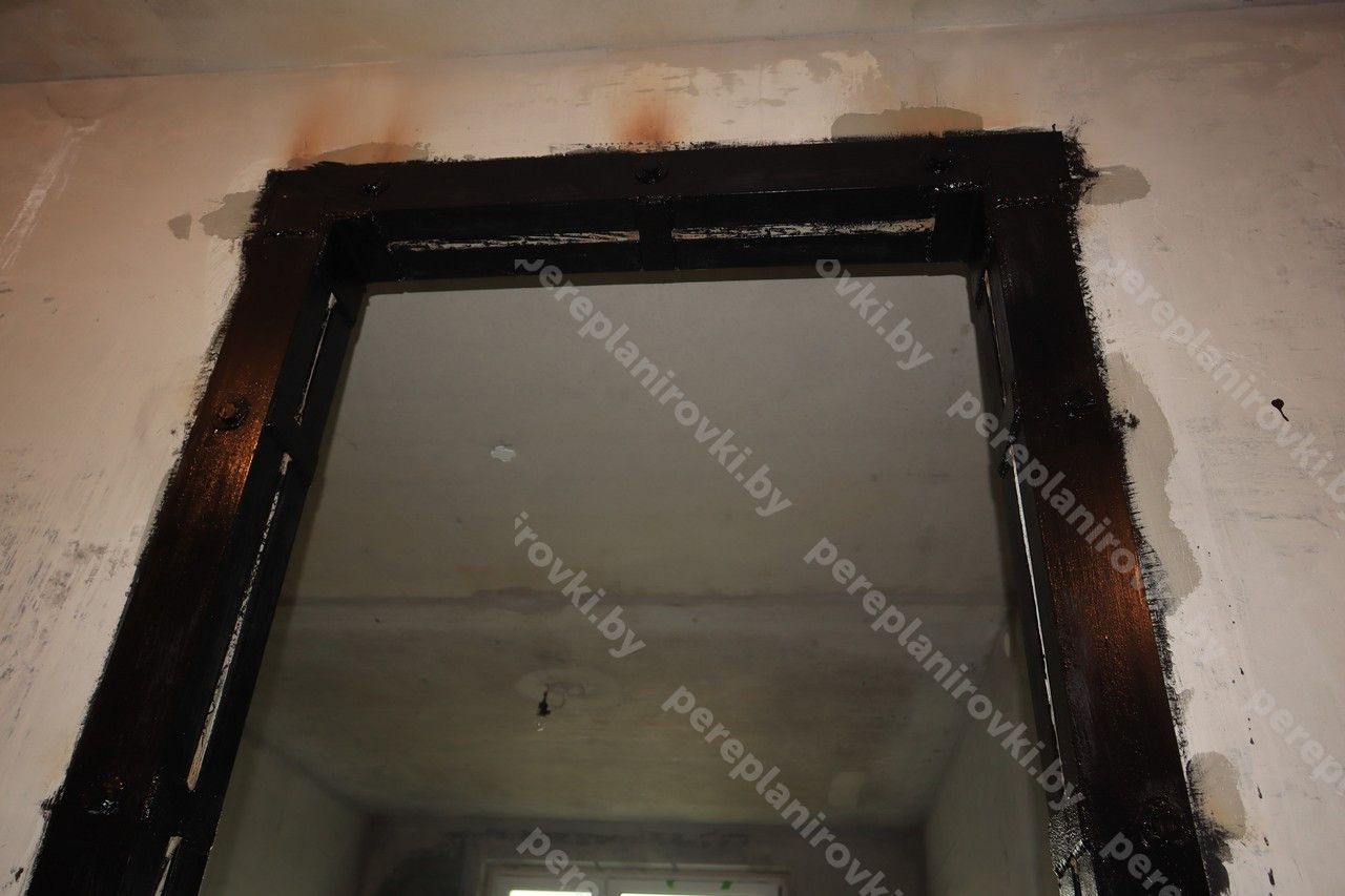 - Устройство проёма между жилой и коридором в несущей стене с усилением металлической рамой опорной РОМ.