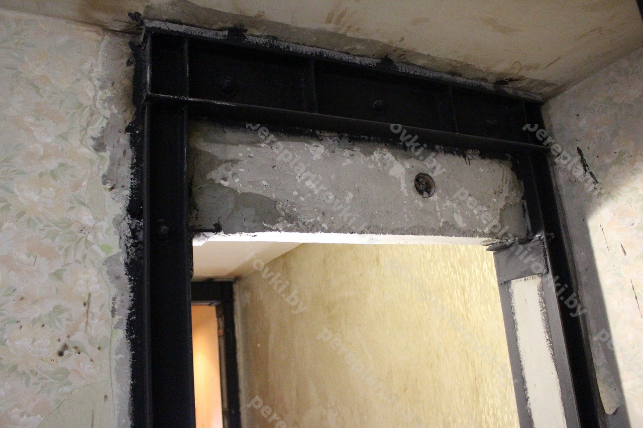 - Выполнили строй работы по устройству разъединение 2-х смежных комнат в две раздельные путём устройства проёмов шириной 900 мм в несущих стенах с усилением металлом.