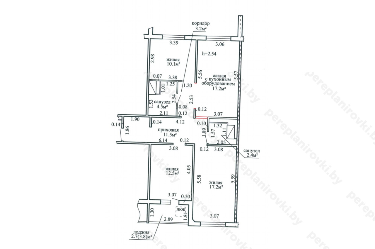 Выполнили перепланировку квартиры, а также реконструкцию квартиры с переносом кухни по улице Пилотная д. 18 в Копище представляет собой следующие решения: