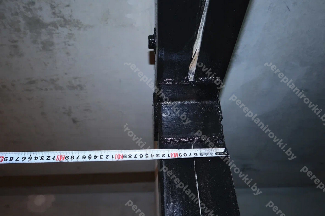 - Выполнили конструкторские расчёты на усиление нового проёма между жилой комнатой и коридором шириной 1860 мм высотой под перекрытие.