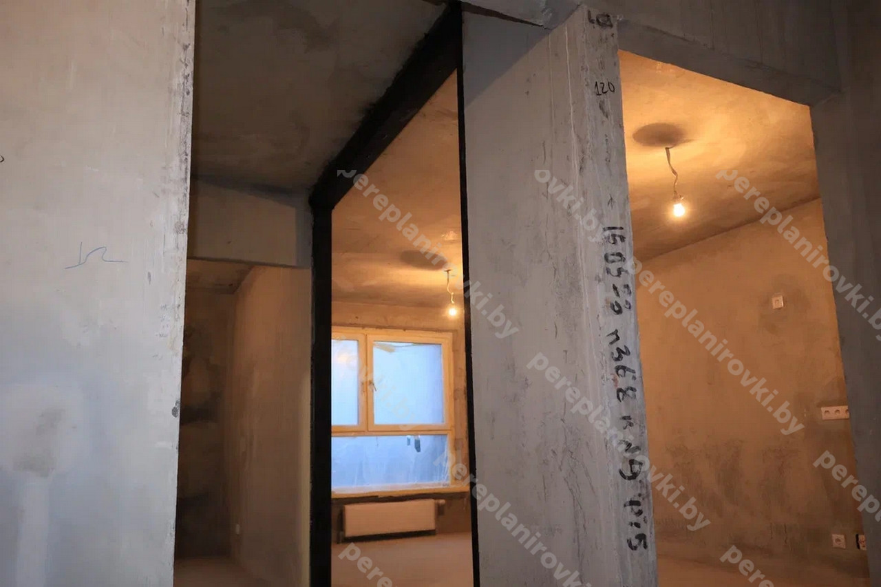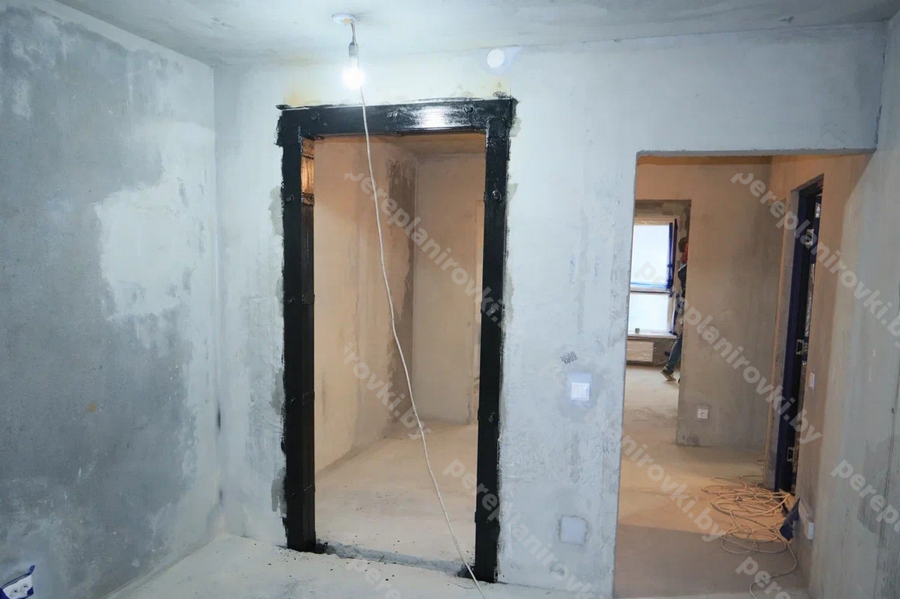 - Выполнили строй работы по устройству проёма в несущей стеновой панели между жилыми комнатами с усилением Рамой Опорной Металлической (РОМ1).