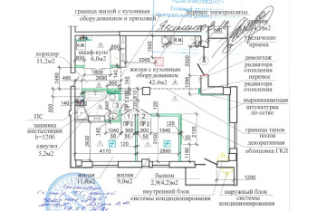 - Произвели проектные работы, включая Разделы: АС- Архитектурно-строительные работы, ЭО - Электрооборудование и освещение (предварительно получили технические условия на электроснабжение в ТС, согласовав их в РЭС), так как электрическая плита переносилась в центр помещения (остров), раздел ВК- Внутренние водопровод и канализация, раздел ОВиК - Отопление, вентиляция и кондиционирование воздуха. , ( расширяли проём между кухней и лоджией и в связи с этим переносили радиатор отопления. Отличием проекта данного жилого дома является наличие на второй лоджии канализации под наружный блок кондиционера, в связи с чем слив дренажа не пришлось тянуть в систему канализации К1 в санузле. ;
