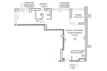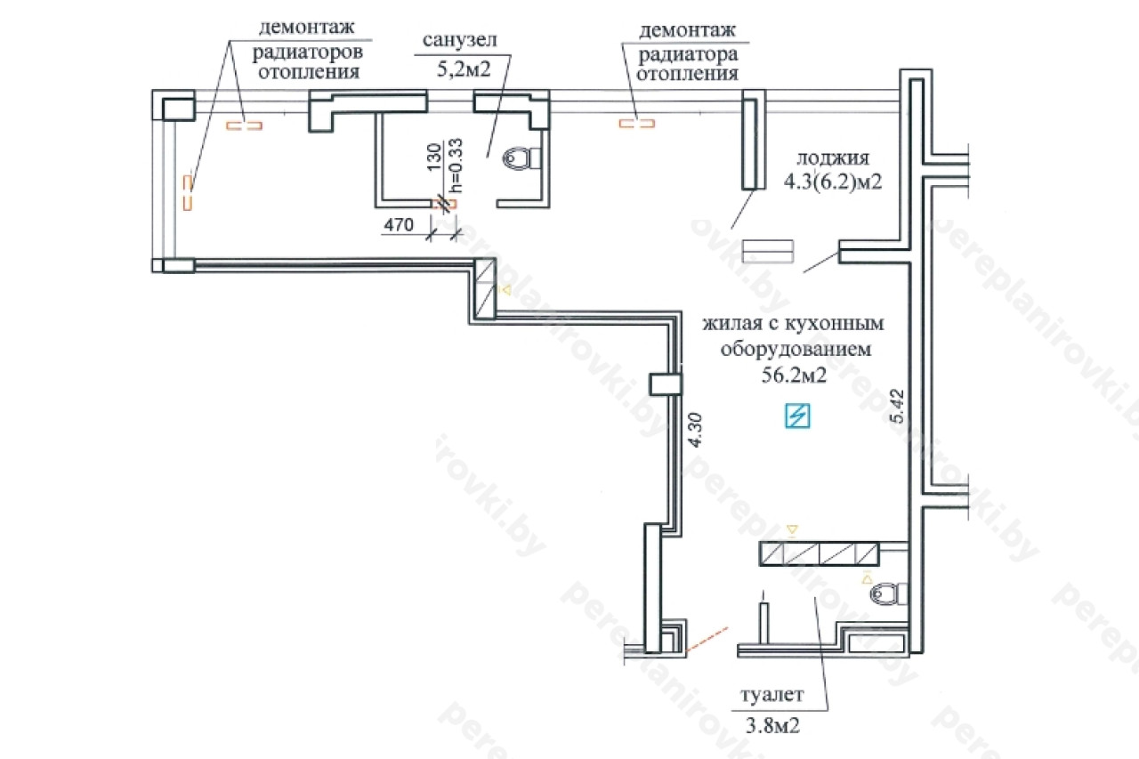 - Выполнили стройработы по устройству гидроизоляции пола вновь образованного санузла, а также переносу и замене радиатора отопления.