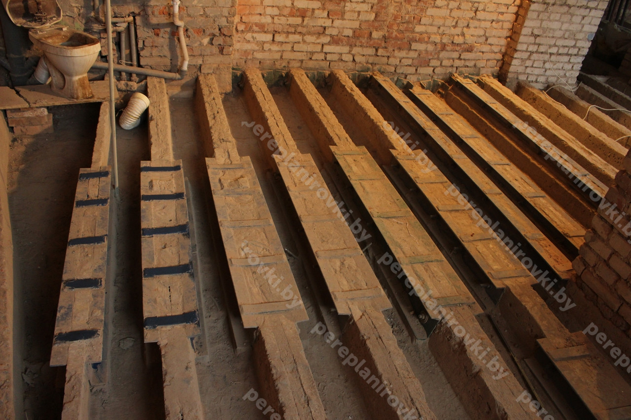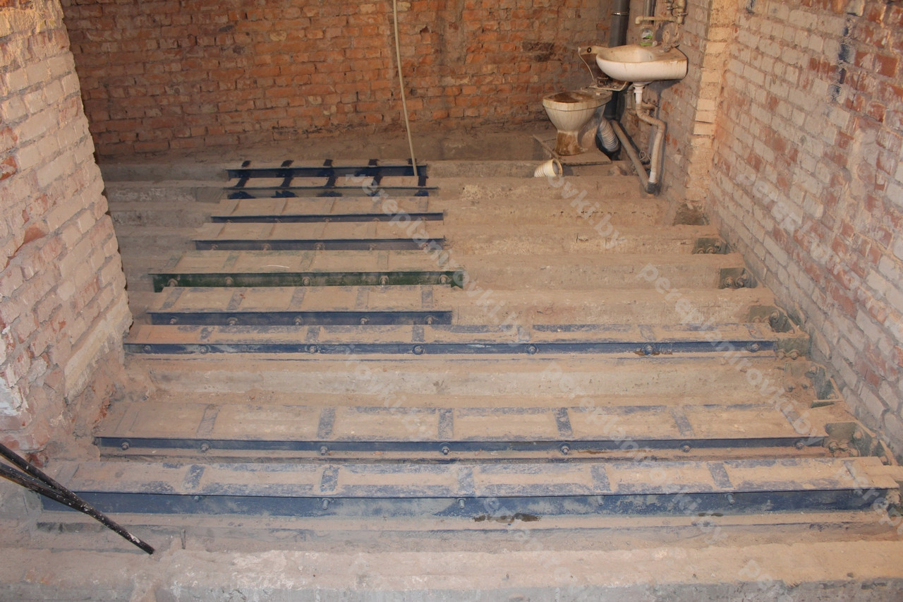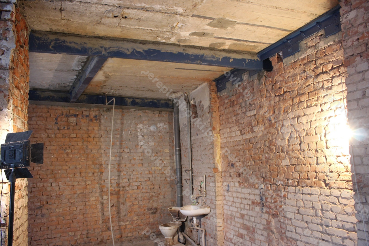 - Усиление "протезами" из швеллеров на стяжку шпильками повреждённых рёбер корытных перекрытий.