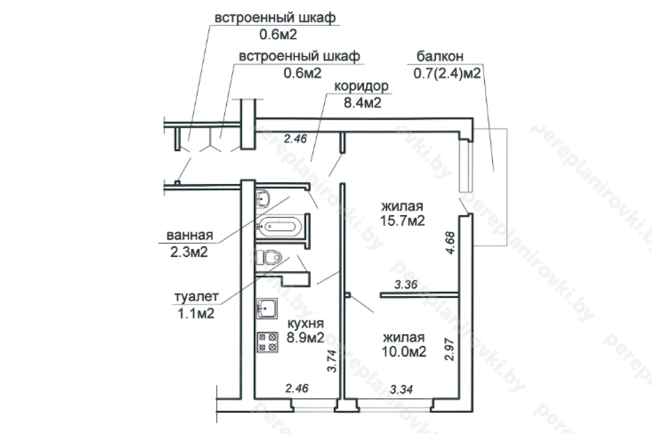 Выполнили проект перепланировки квартиры по проспекту Партизанский д. 147 в Минске представляет собой следующие решения: