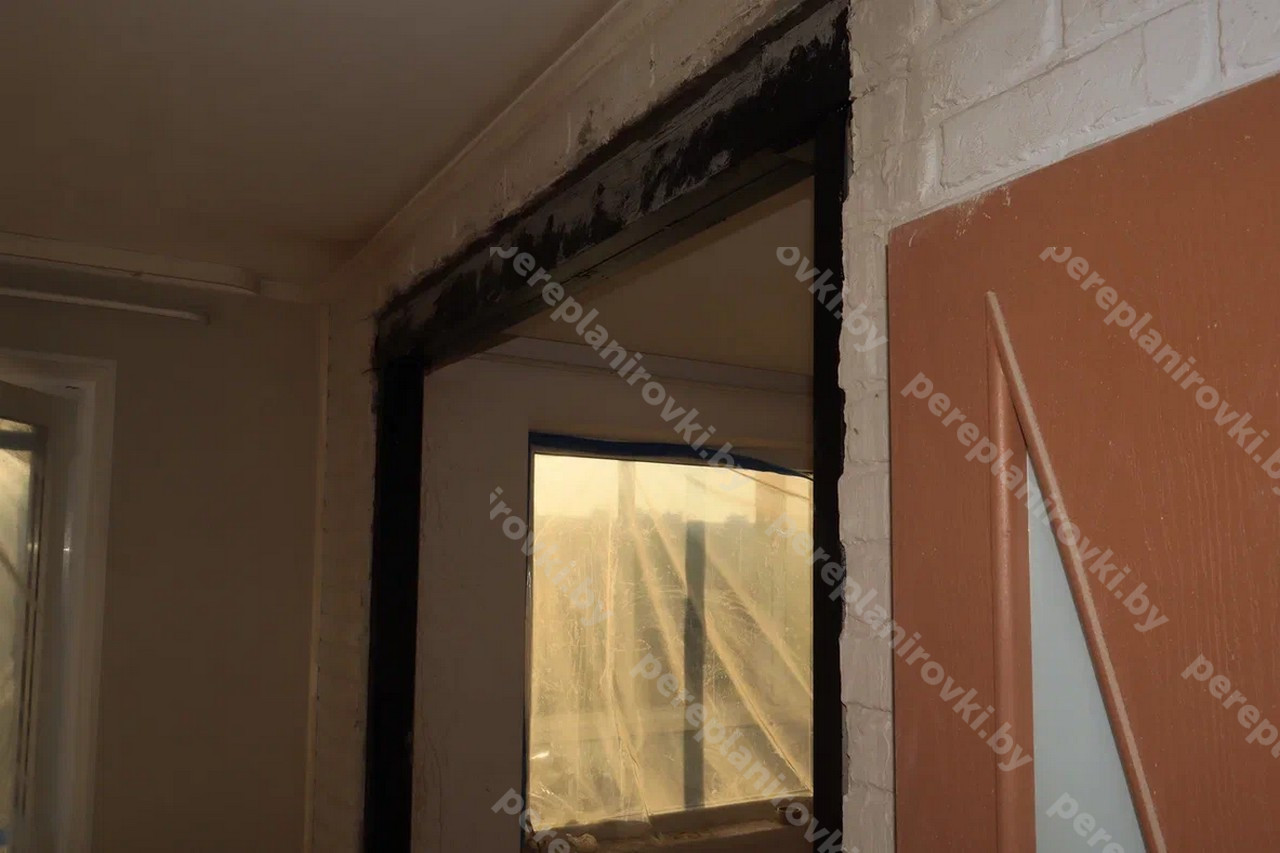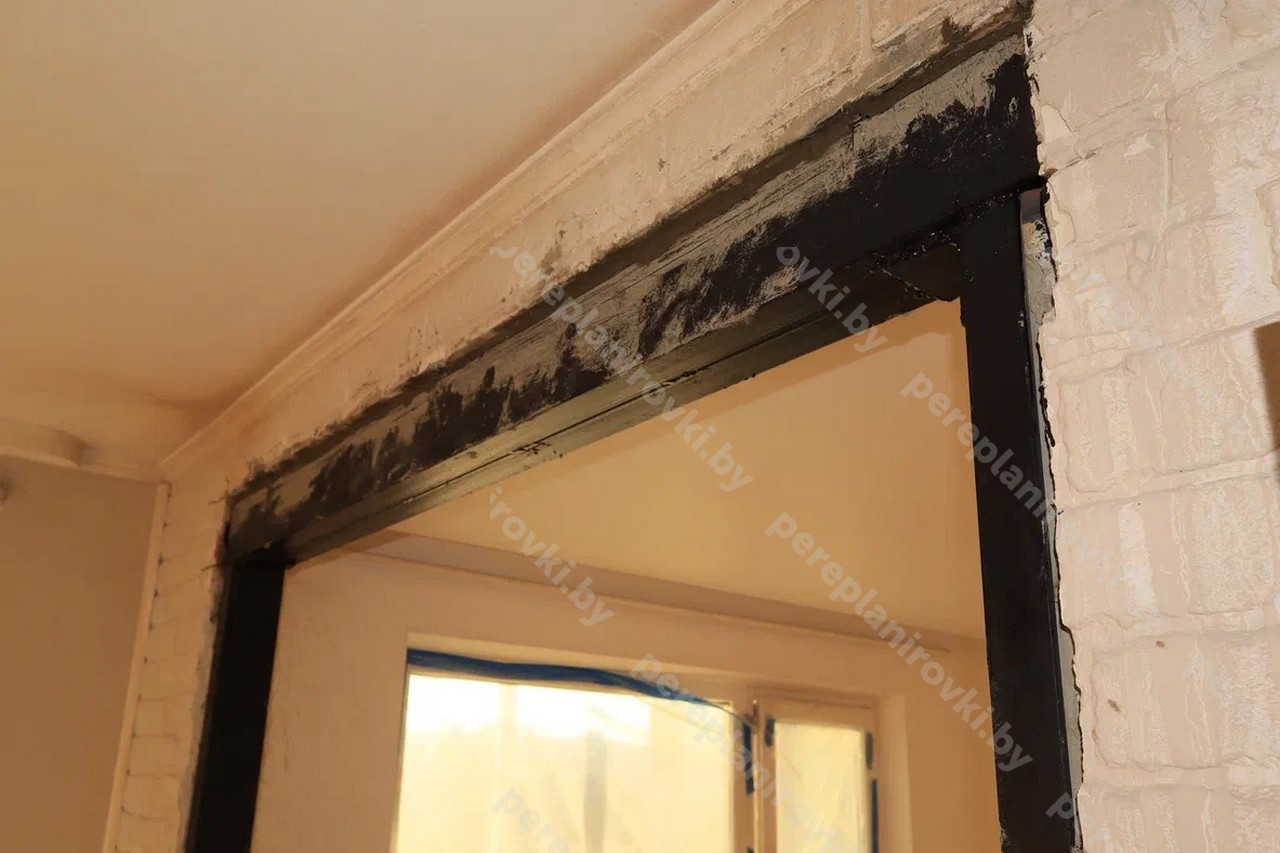 - Выполнили строй работы по усилению существующего проёма между кухней и жилой шириной 1560 мм Рамой Опорной Металлической скрытого исполнения - после отделки не видно вообще. (5/5 панель).