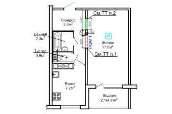 - Разработали проект перепланировки, включая разделы: АС, КМ, ТЗ, ОПЗ.