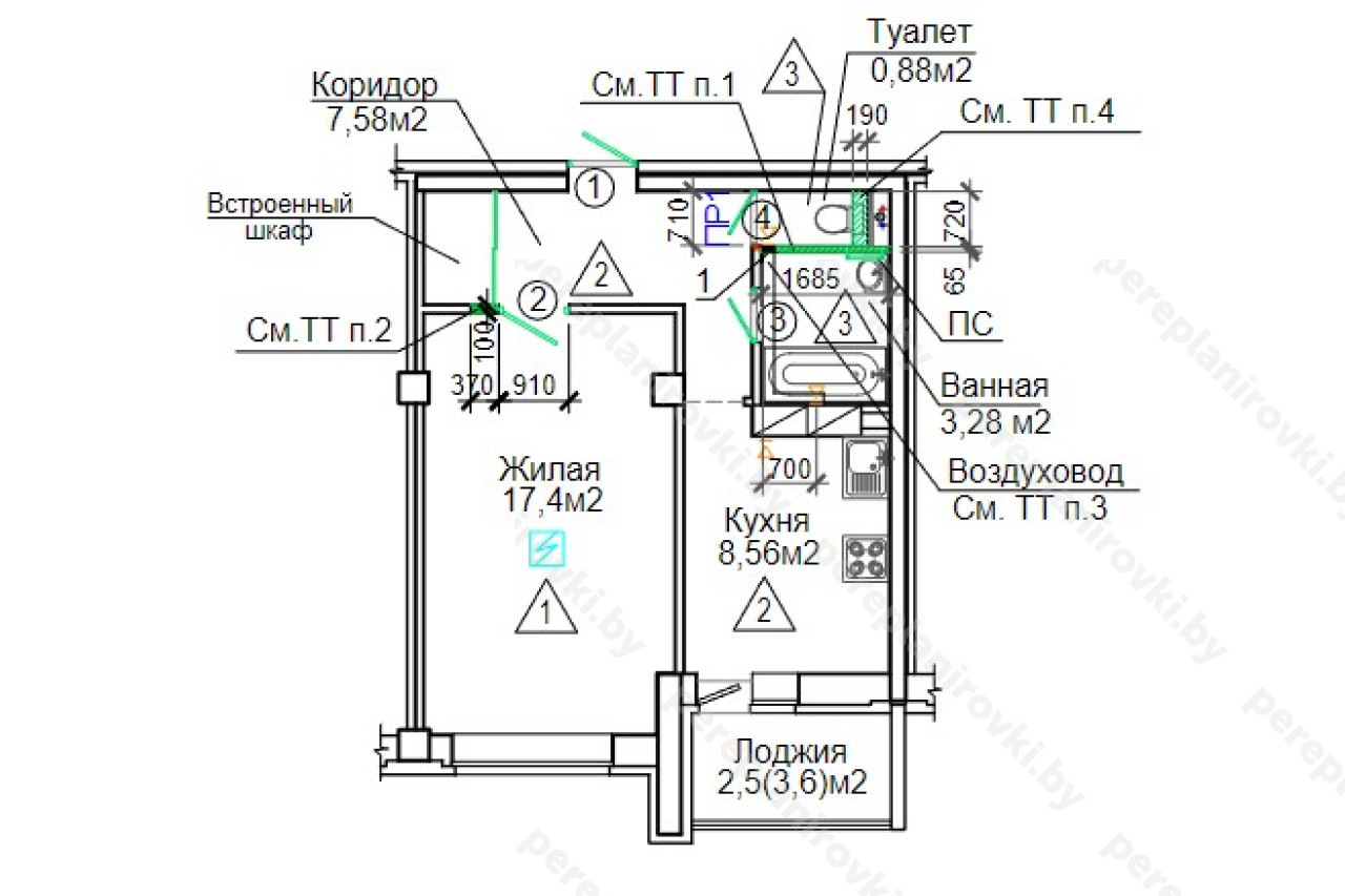 Выполнили перепланировку квартиры по улице Притыцкого д. 113 в Минске представляет собой следующие решения: