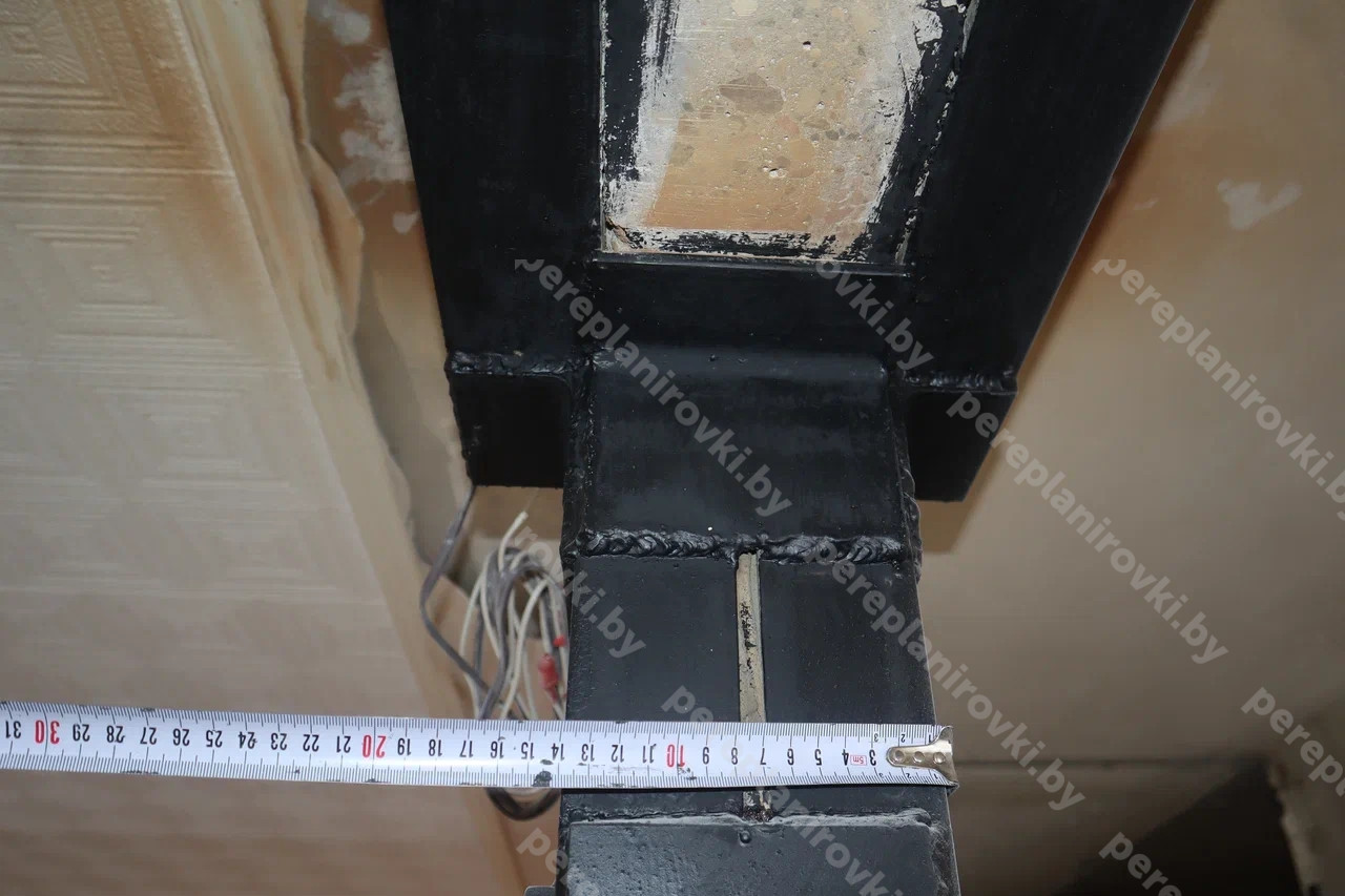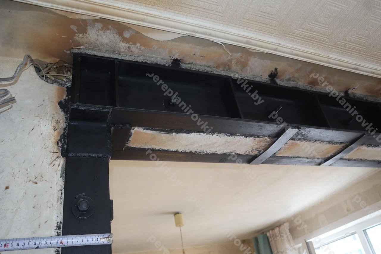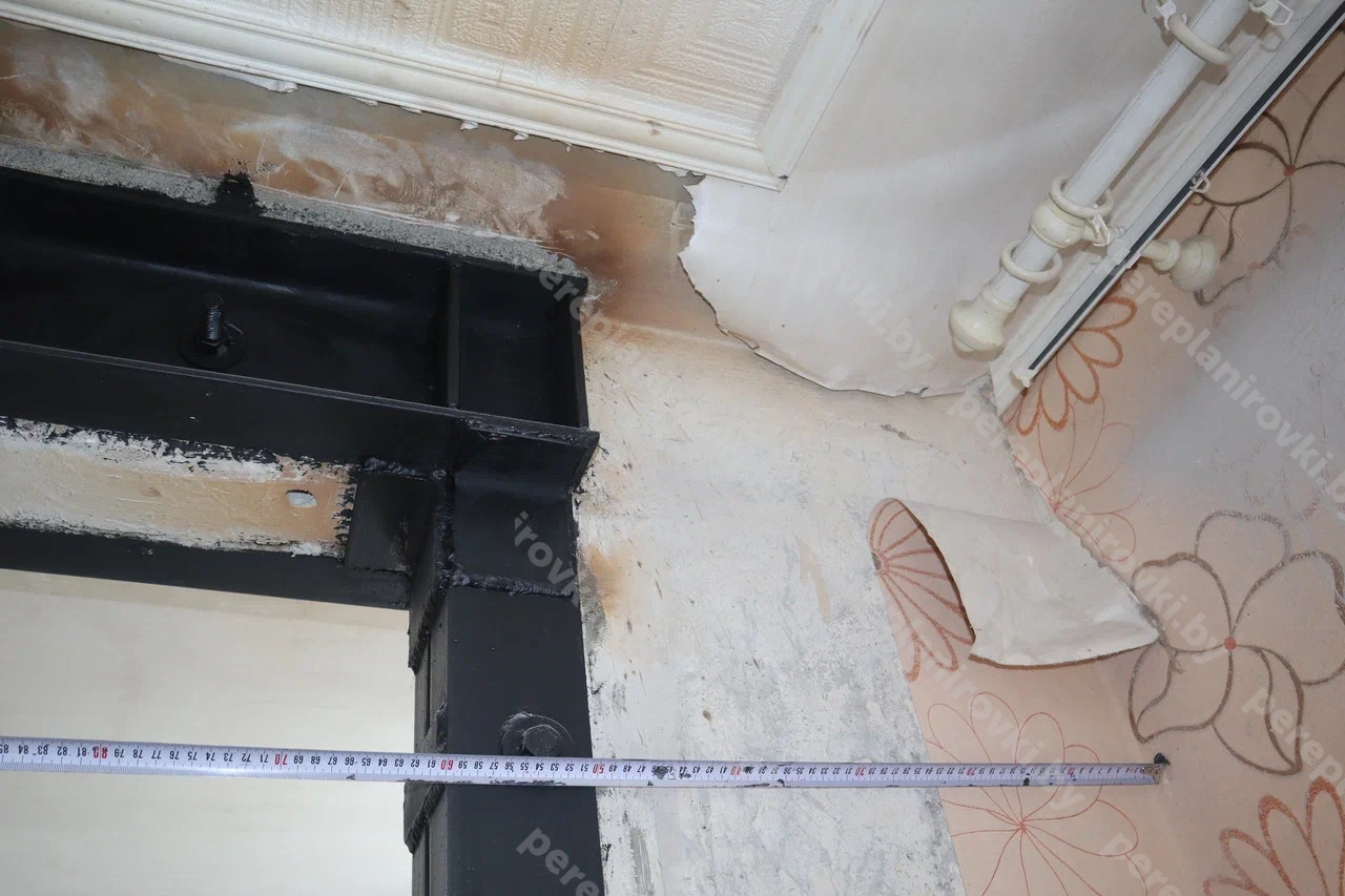 Выполнили усиление проёма в несущей стене квартиры по улице Рафиева д.78 в Минске представляет собой следующие решения: