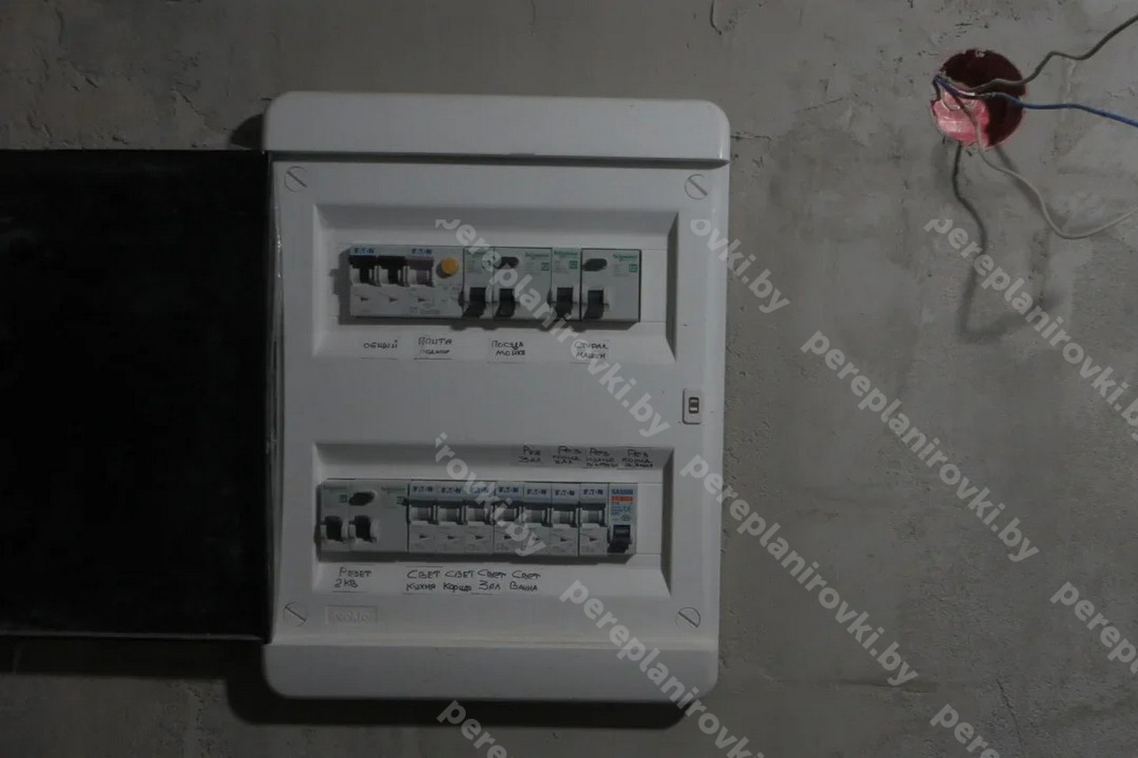 - выполнили электромонтажные работы во всей квартире, устроив щиток в квартире с отдельными автоматами.