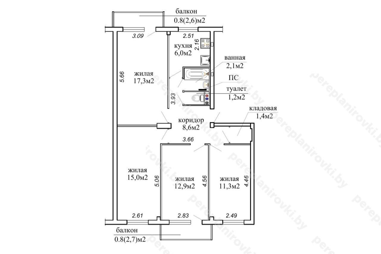 Выполнили проект перепланировки квартиры по улице Данилы Сердича д. 4 в Минске представляет собой следующие решения: