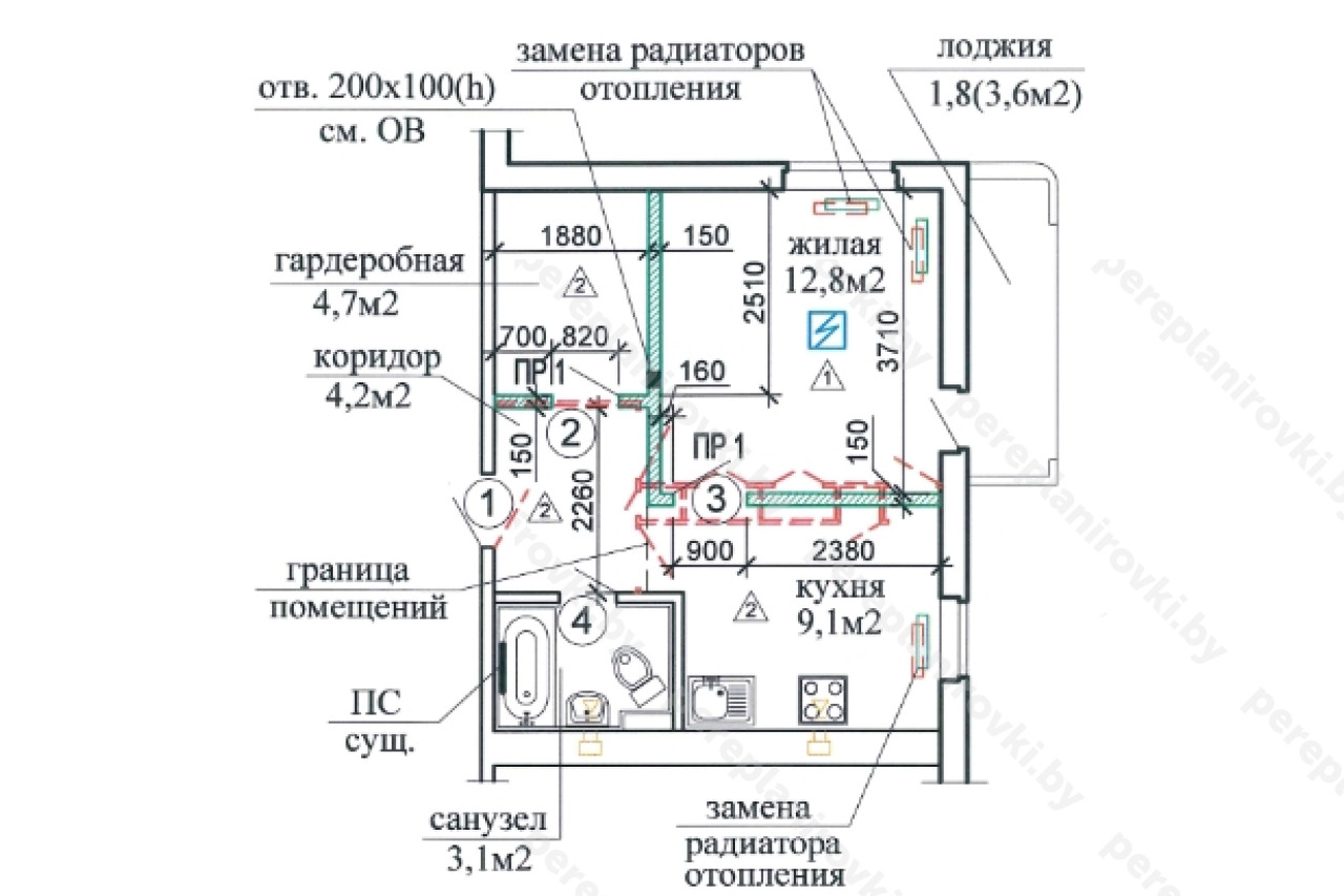 Выполнили проект перепланировки квартиры по улице Шугаева д. 11 в Минске представляет собой следующие решения: