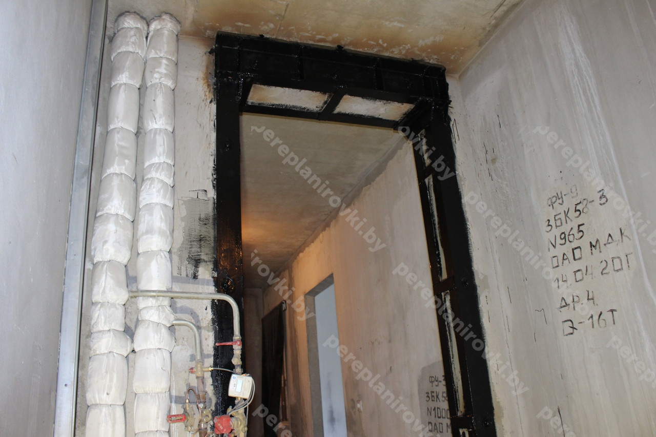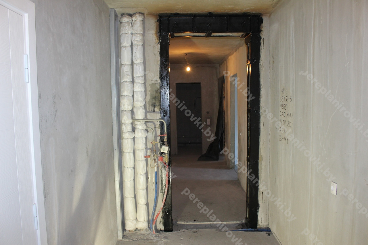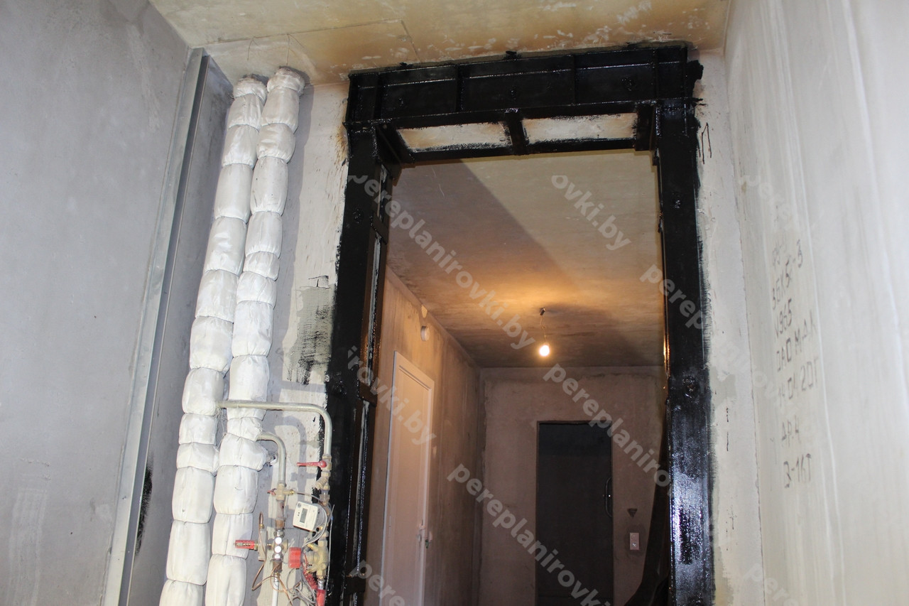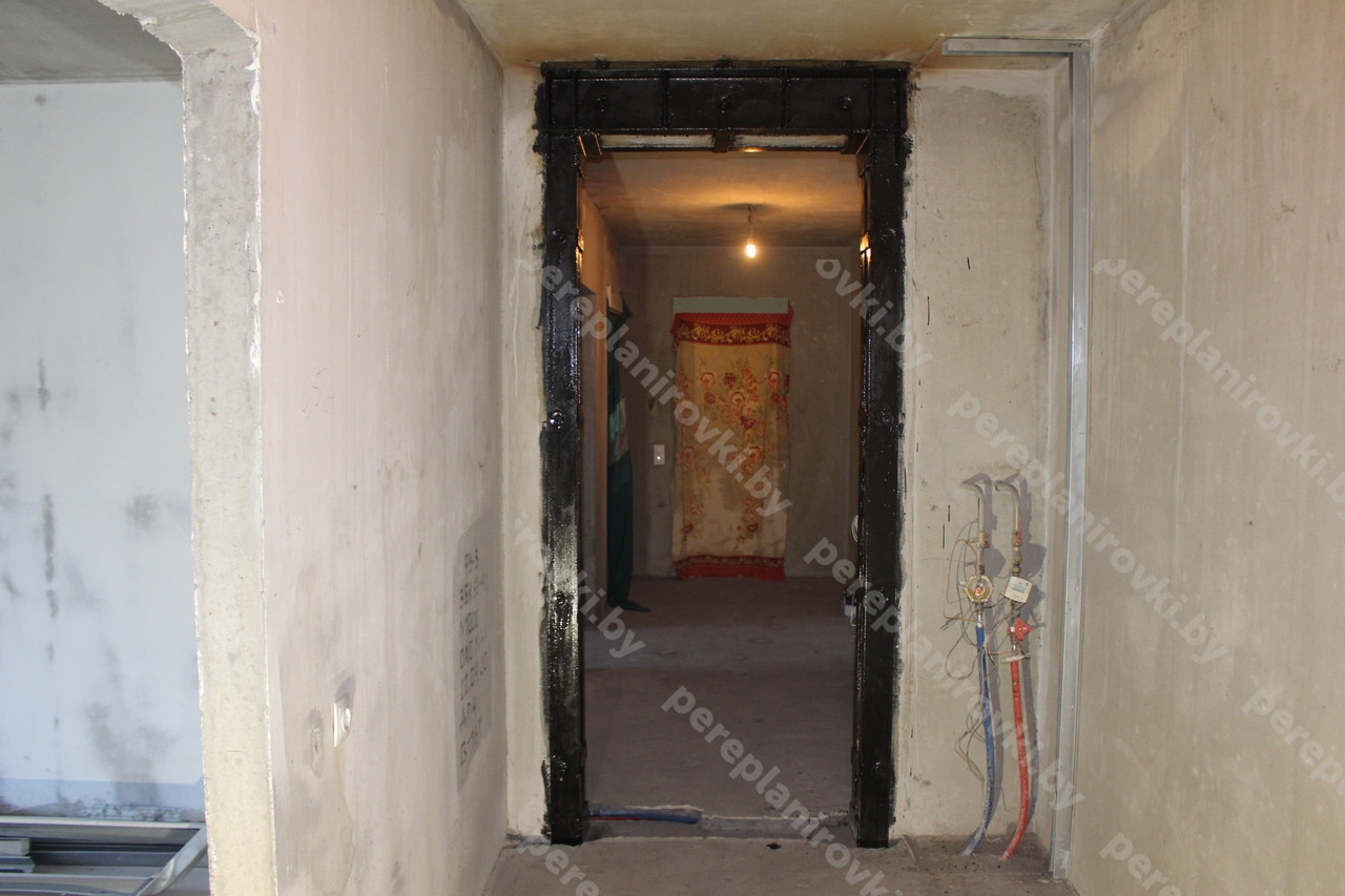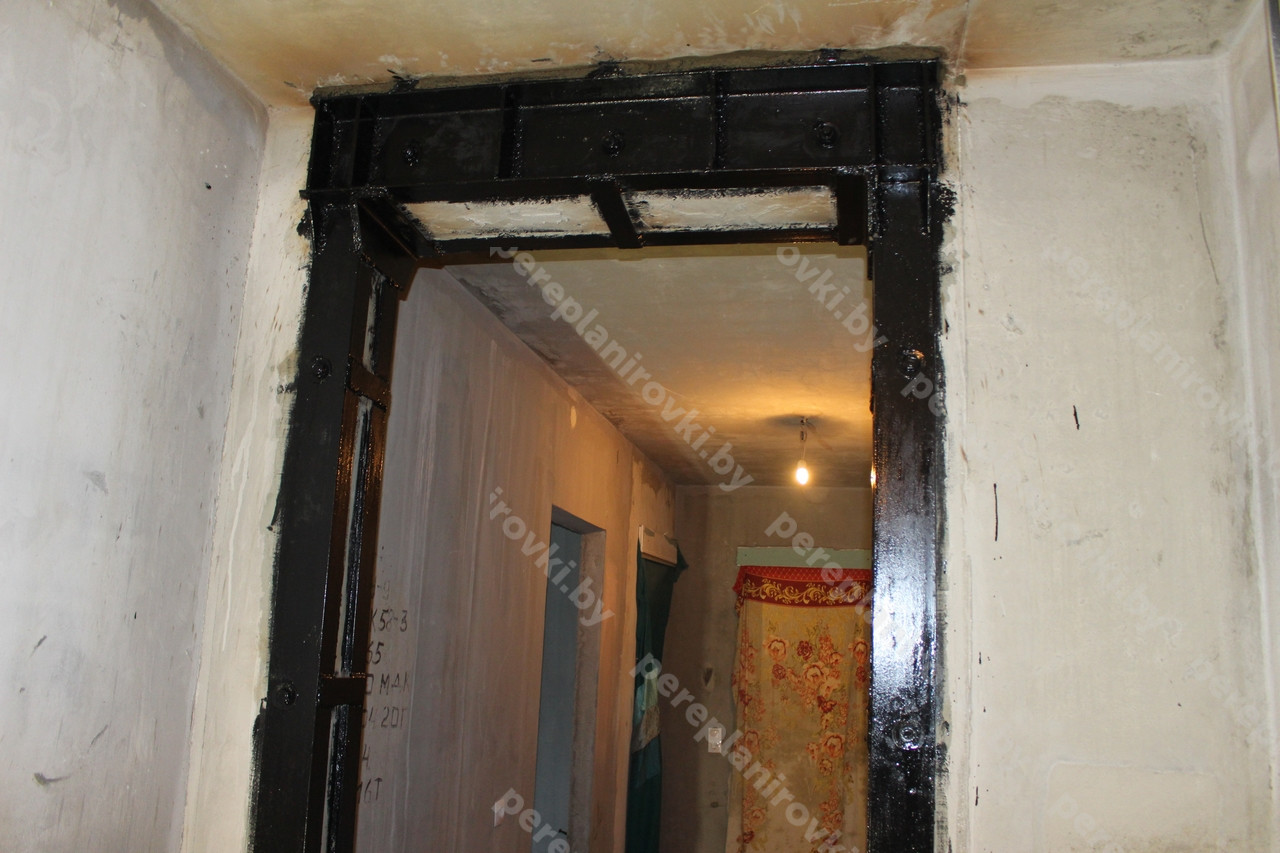 - - Проём между квартирами в несущей стене с усилением металлом и отделкой ГКЛ.