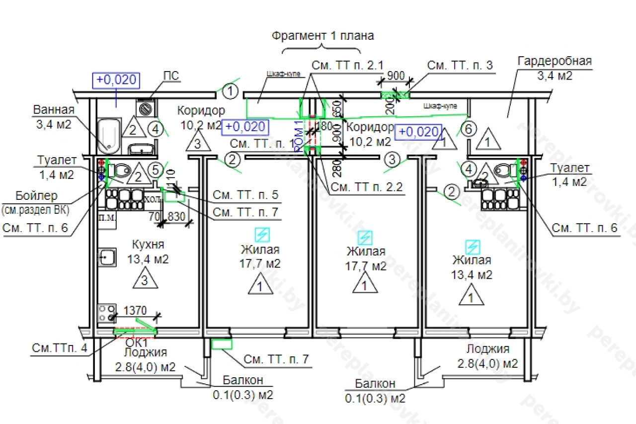 Выполнили перепланировку жилого помещения по улице Солтыса д. 32 в Минске представляет собой следующие решения: