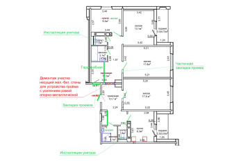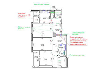 - - Проём между квартирами в несущей стене с усилением металлом (приложили Аттестаты Соответствия).