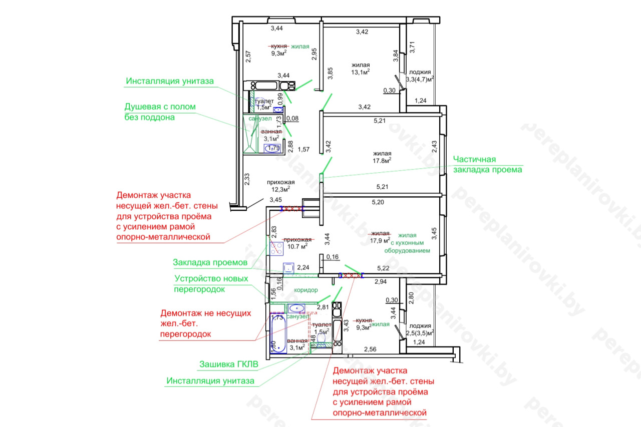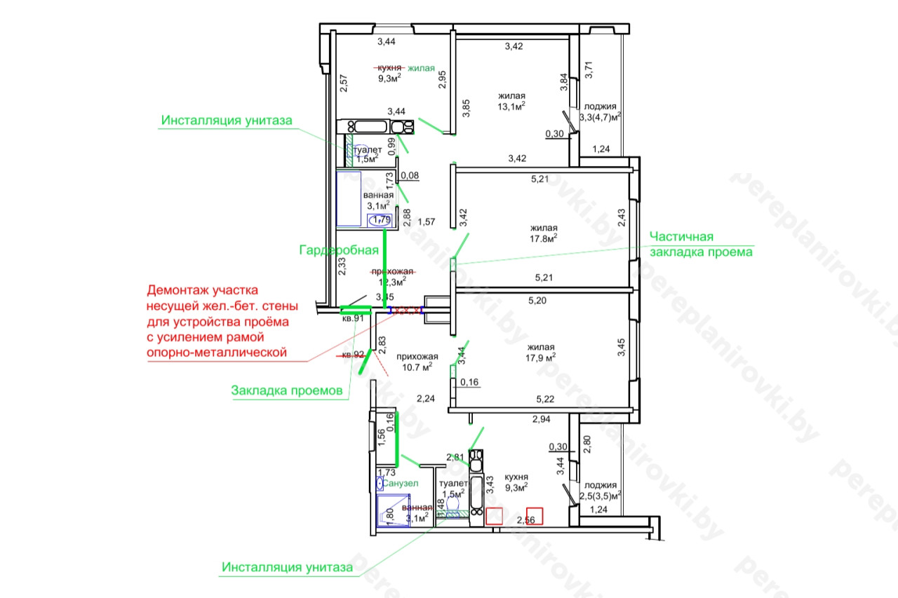 Выполнили объединение квартир по ул. Уборевича д. 98 в Минске представляет собой следующие решения: