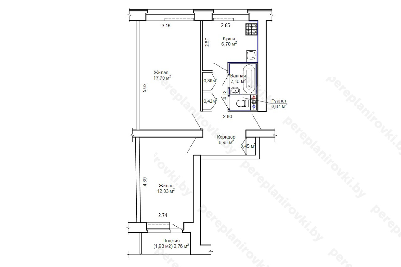 Выполнили проект перепланировки квартиры по улице Восточная д. 32 к. 1 в Минске представляет собой следующие решения: