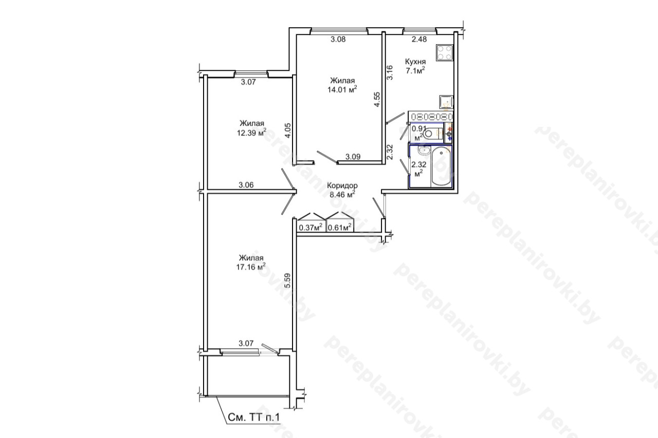 Выполнили проект перепланировки квартиры по улице Якубова д. 66 к. 1 в Минске представляет собой следующие решения: